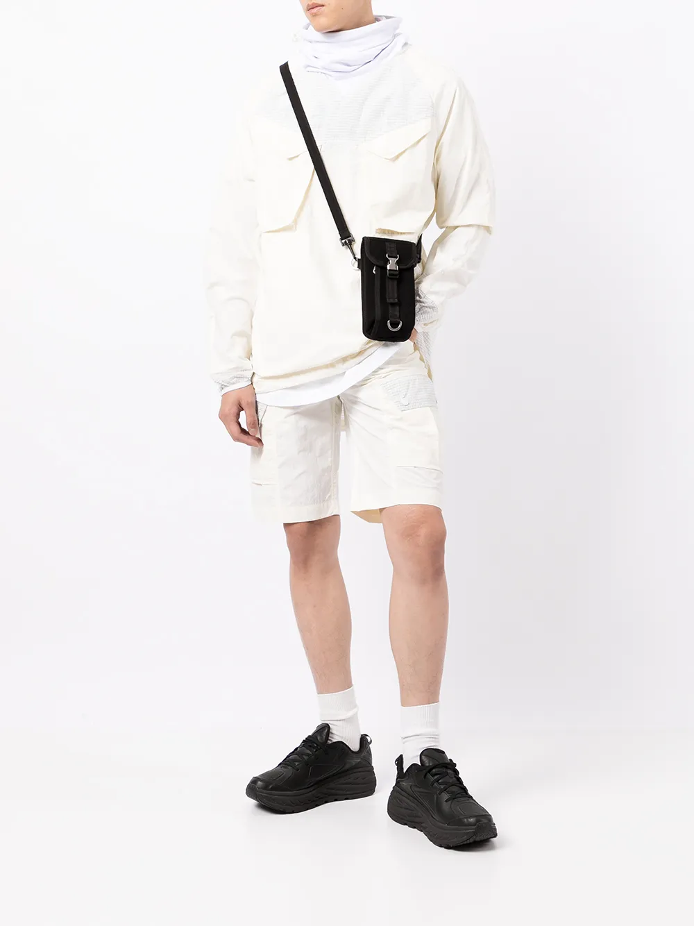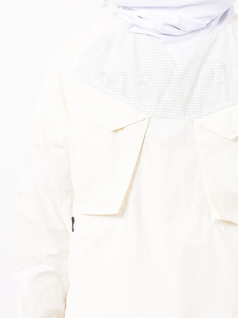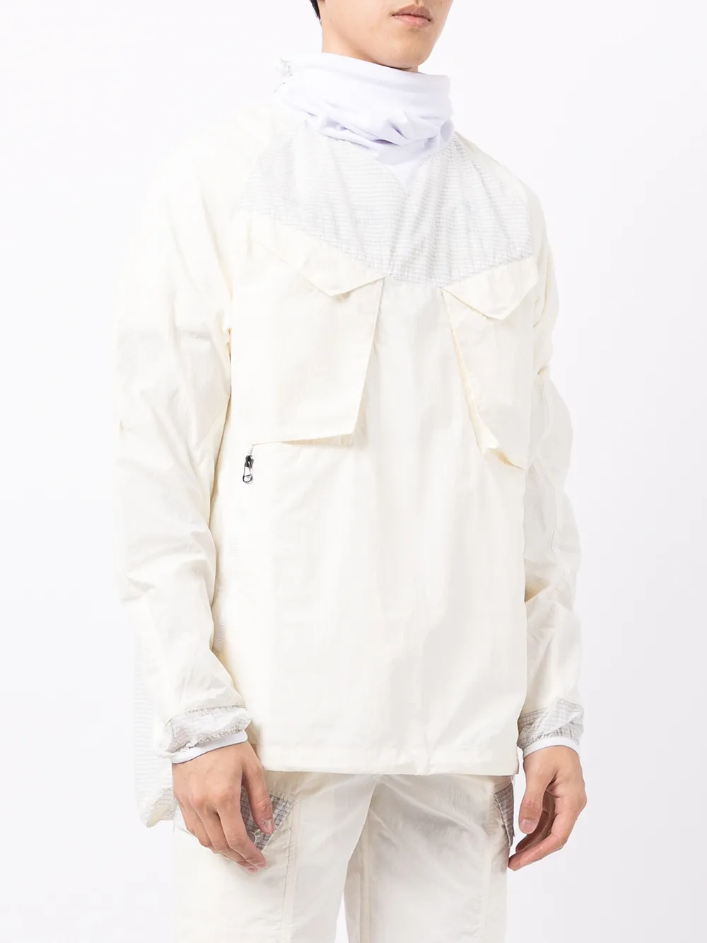 Воротник-труба, длинные рукава и два накладных кармана на груди. Цвет: белый.