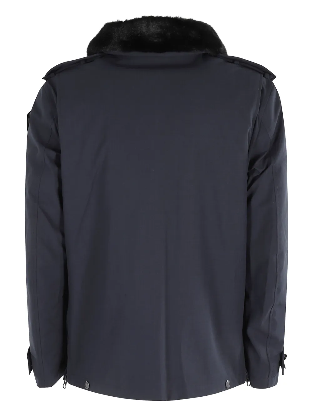 Куртка с меховым воротником и карманами-клапанами Blauer, синий