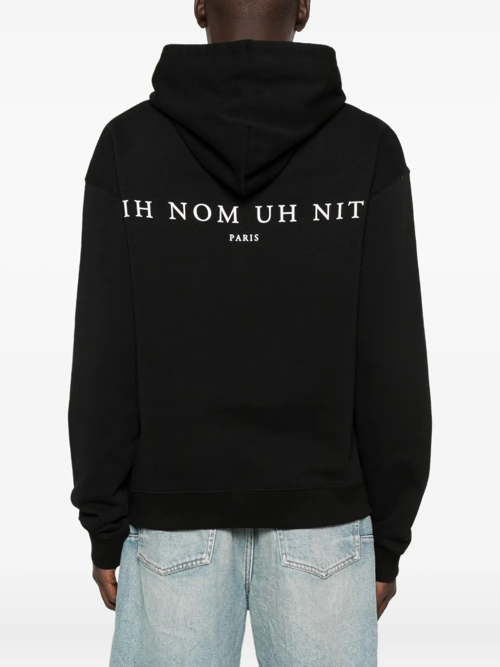 Черный хлопковый капюшон с графическим принтом на воротнике