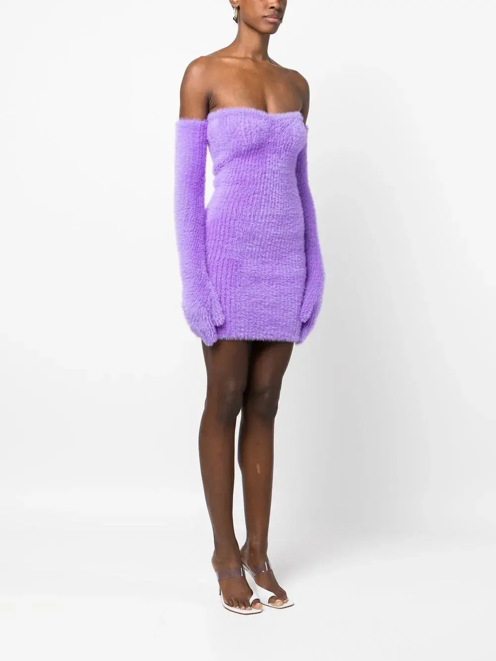Платье мини Fuzzy Gloves OFF-WHITE, фиолетовый