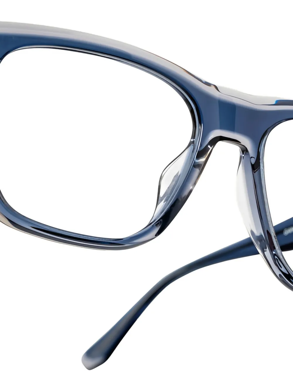 Очки с прямоугольной синей оправой и прозрачными линзами. Эти очки поставляются с защитным футляром. Все очки FARFETCH продаются в оправах без диоптрий.
