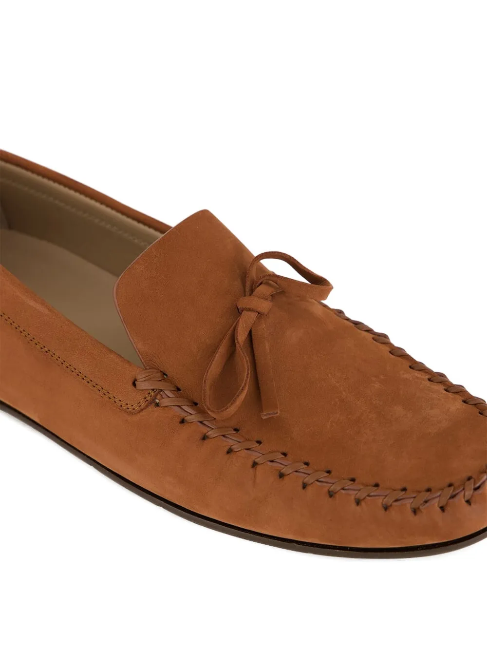 Коричневая телячья кожа, вышитая вручную, с бантом, плоская резиновая подошва, модель slip-on
