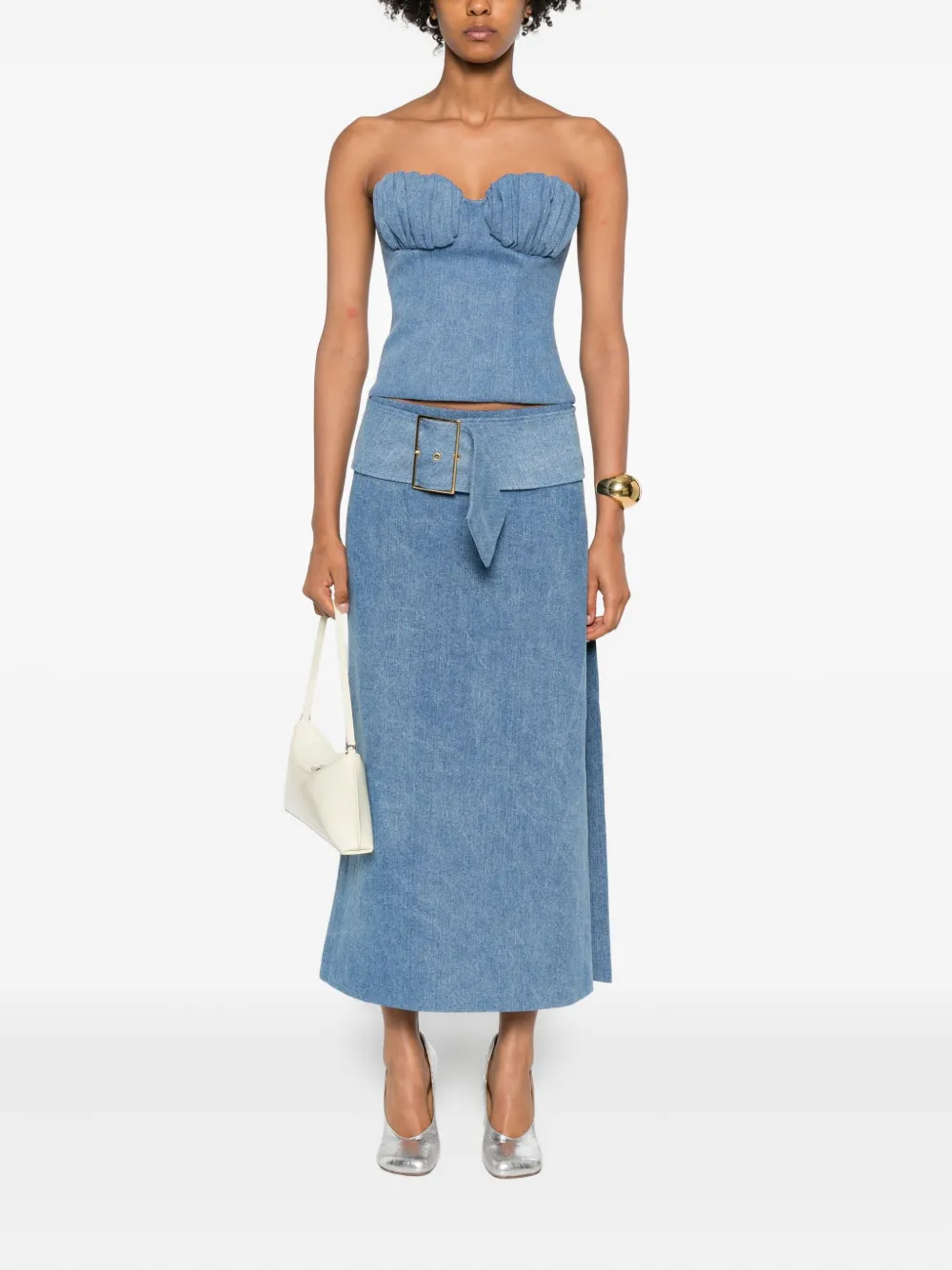 Топ-бюстье из денима со сборками Rowen Rose, синий