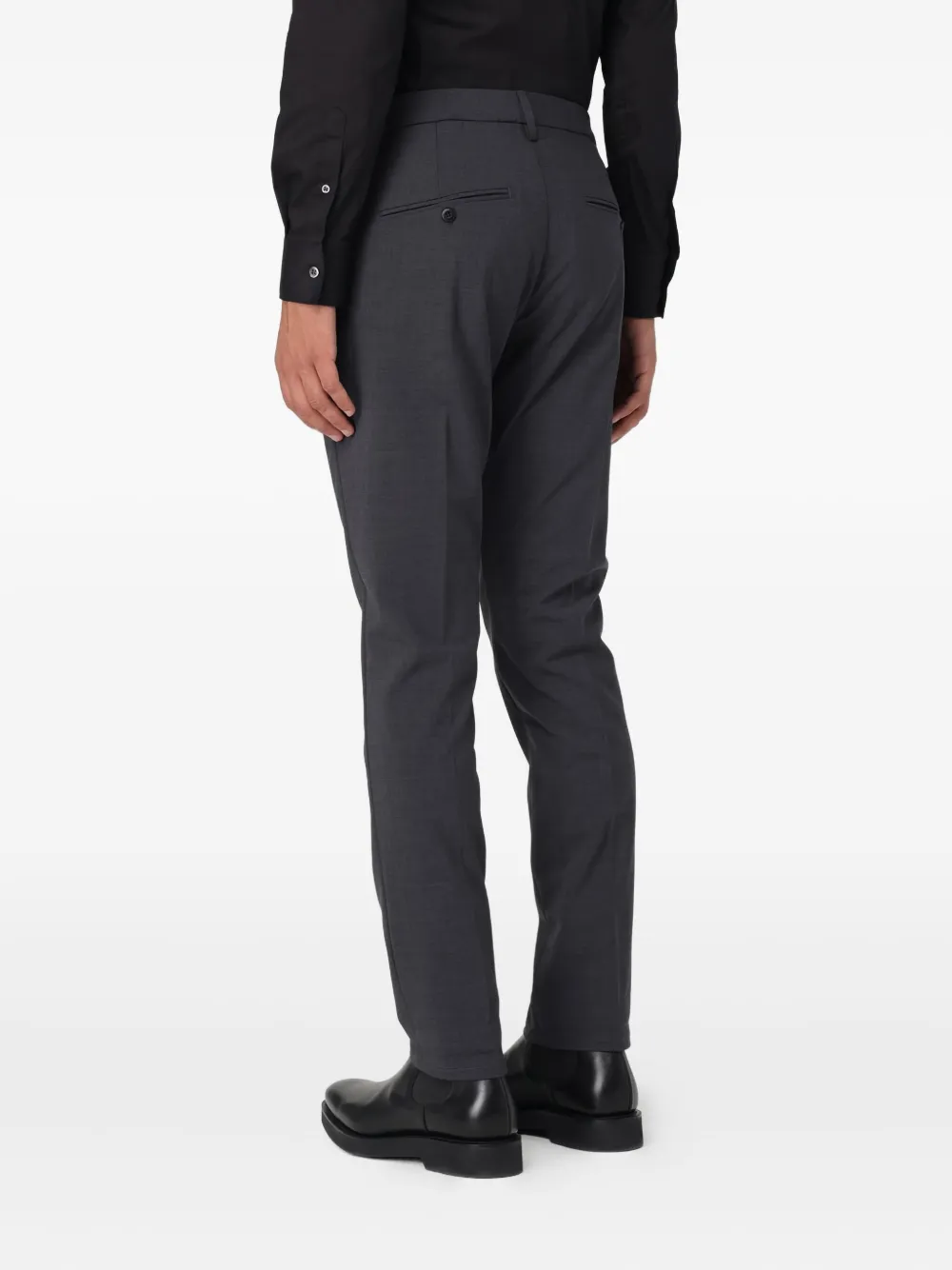 Темно-серые пуговицы, шлевки для ремня, боковые карманы.