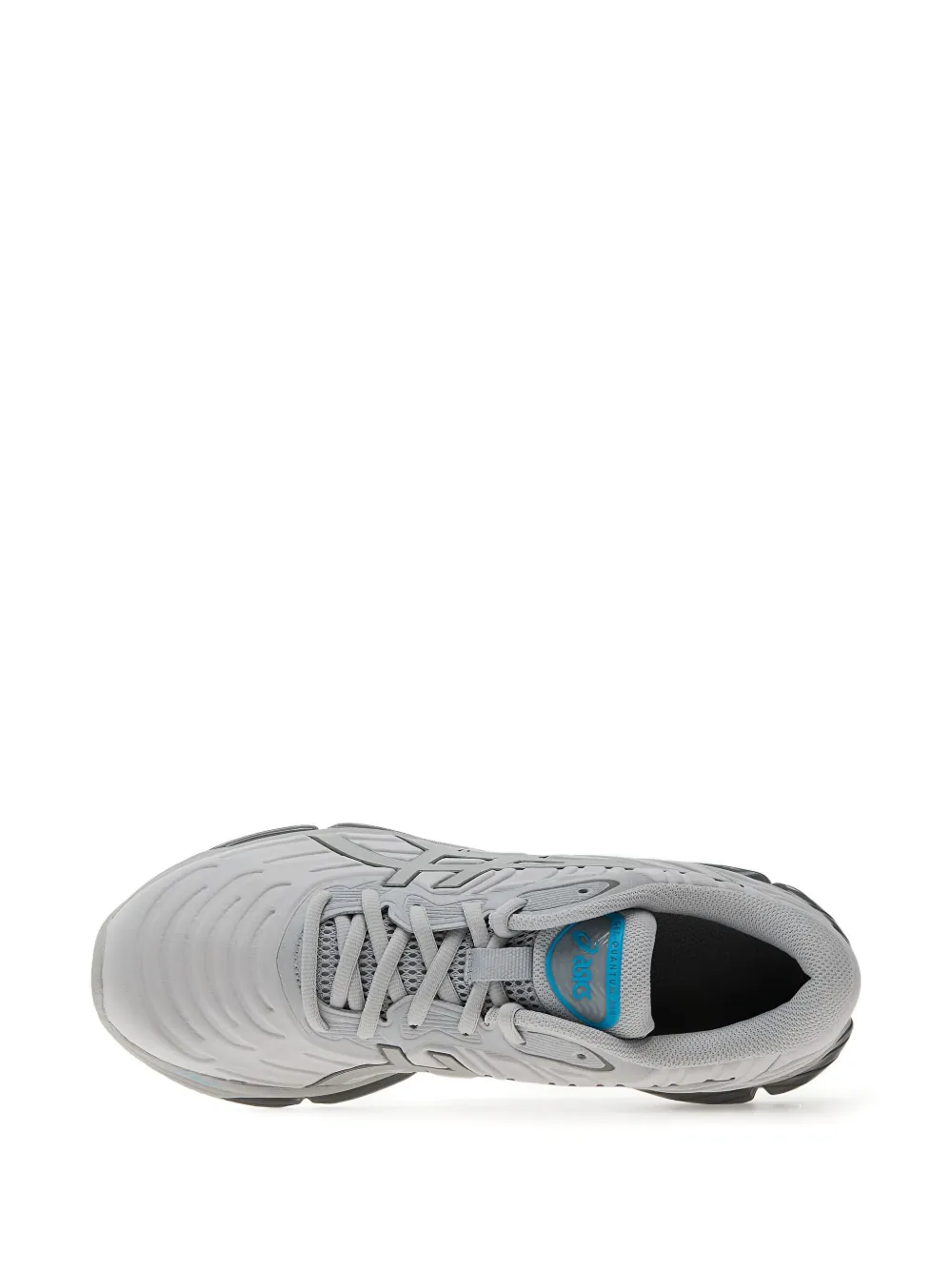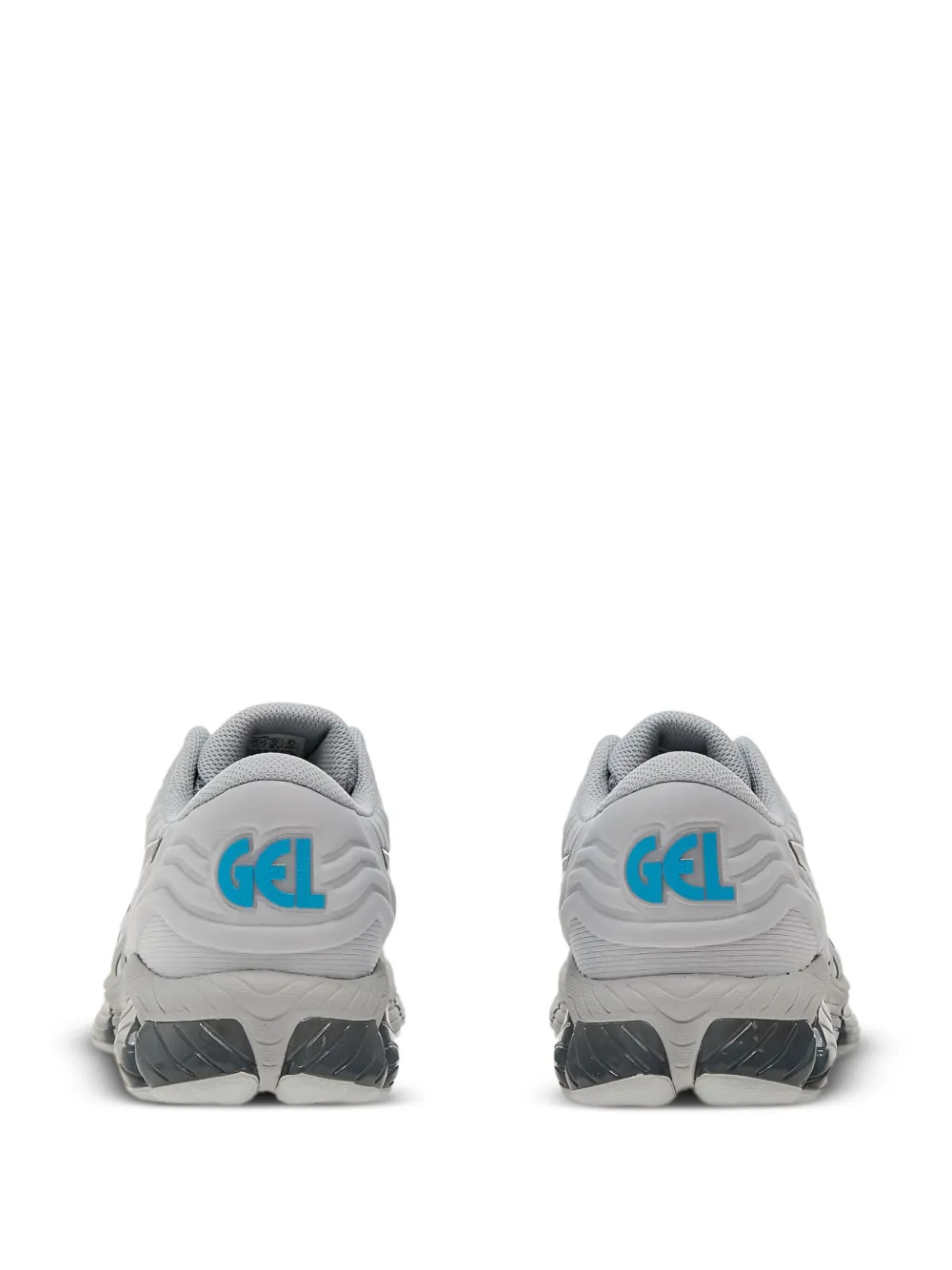 Серый тисненый гелевый амортизирующий эффект, шнуровка сзади, рельефная промежуточная подошва с логотипом «Gel»