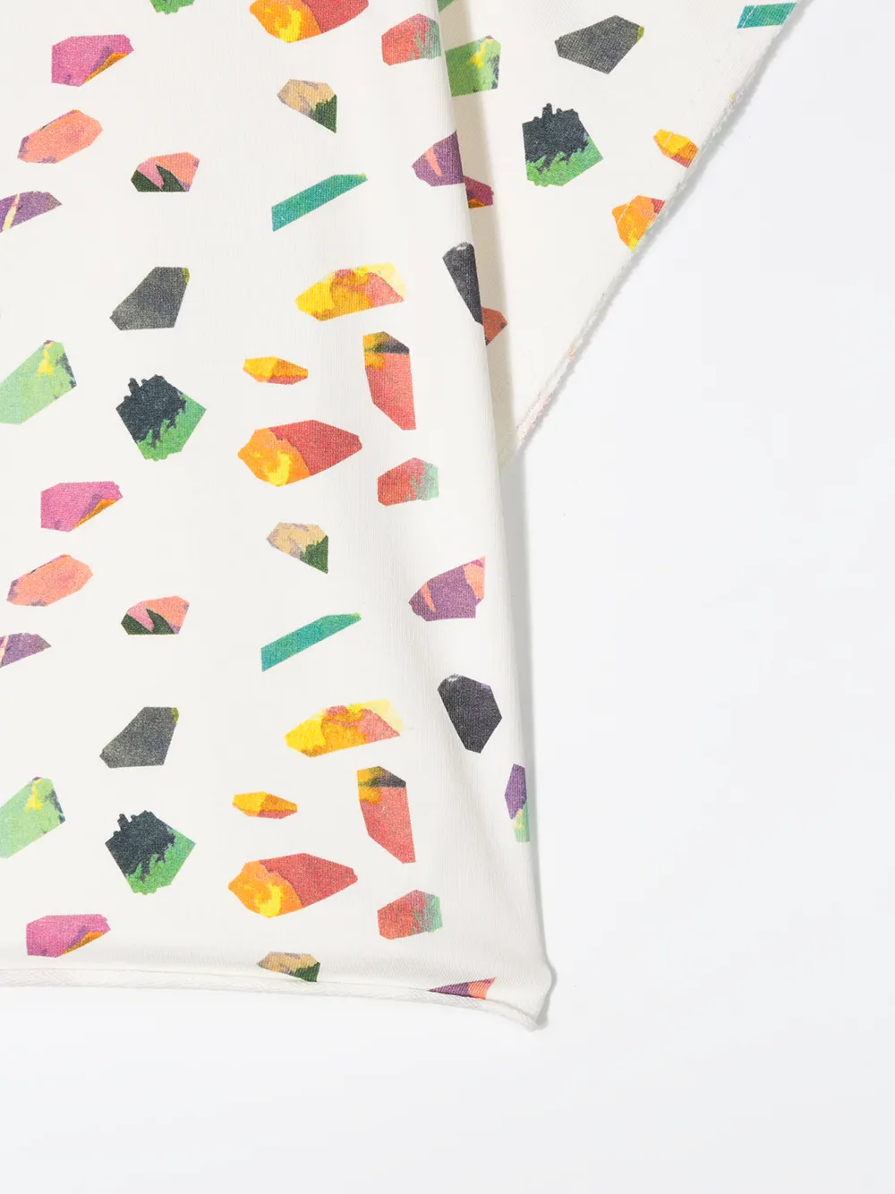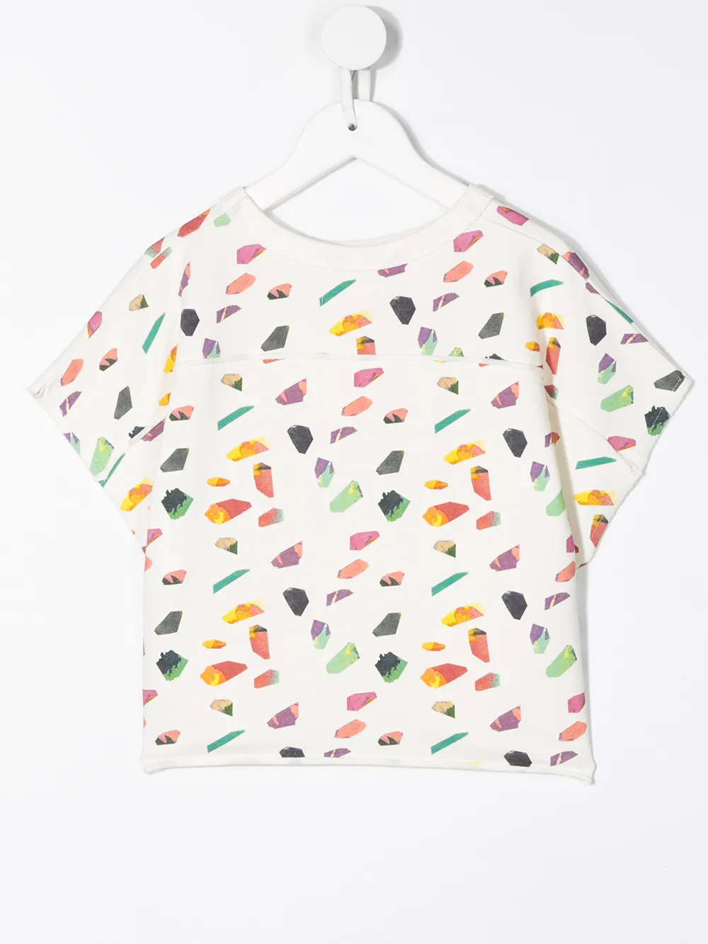 Футболка с геометричным принтом от Andorine. Разноцветный принт, круглый вырез, короткие рукава и прямой подол. Цвет: белый.