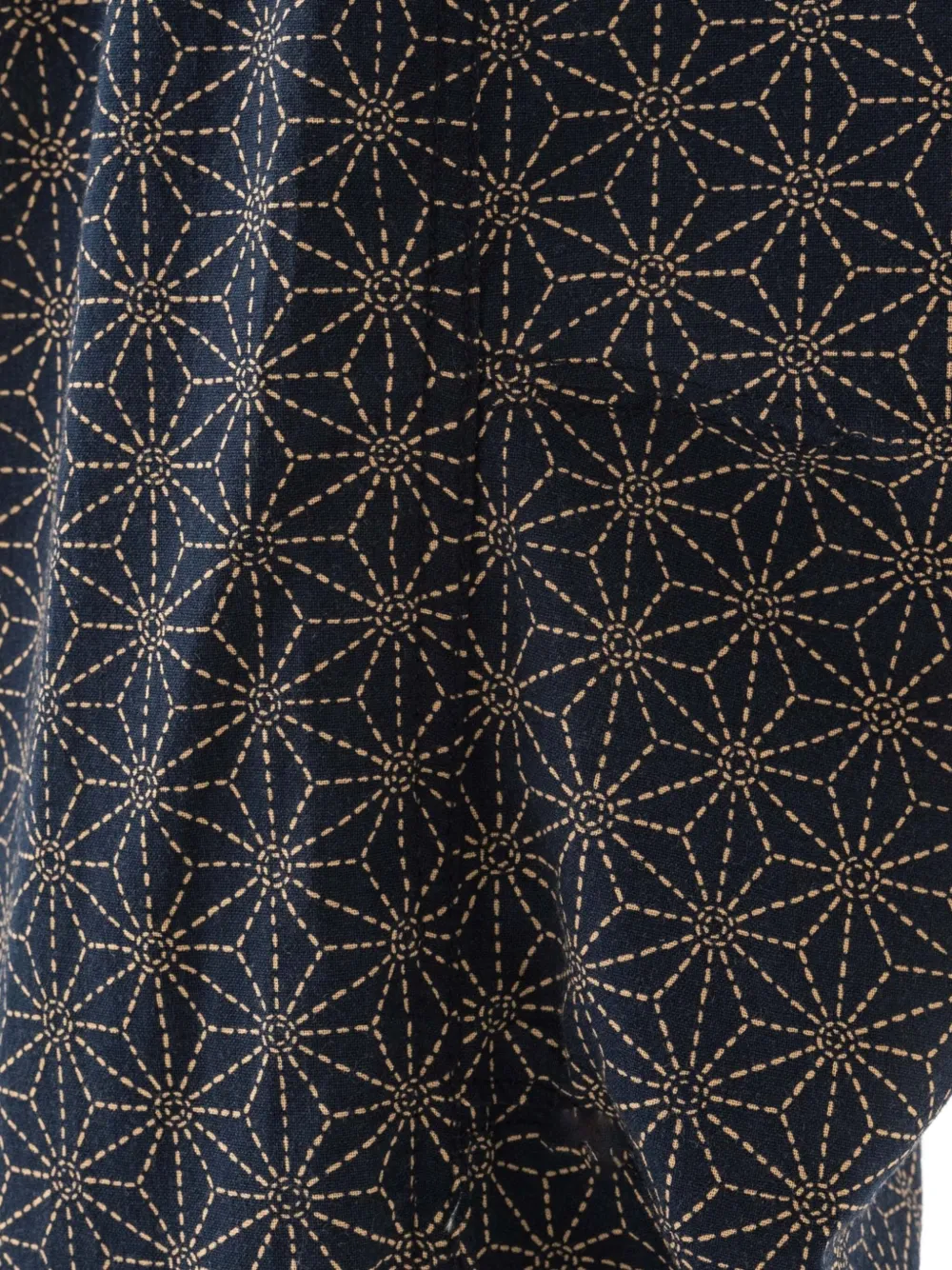 Темно-синий геометрический узор, завязка на талии, боковые карманы, хлопок
