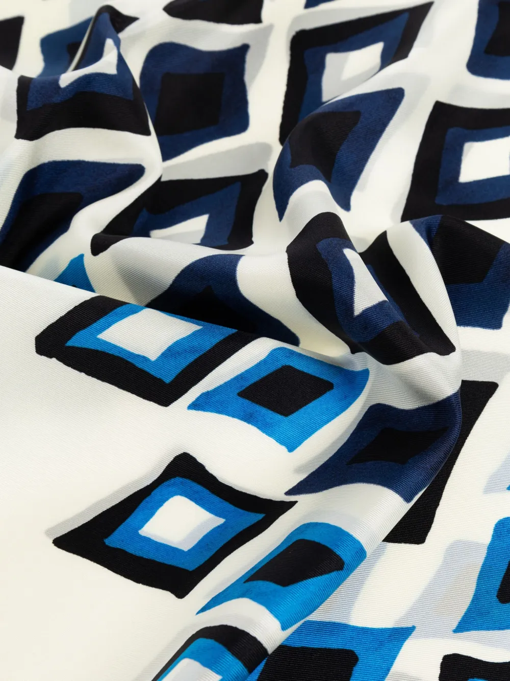 Белый шёлковый ромбовидный узор с геометрическим принтом