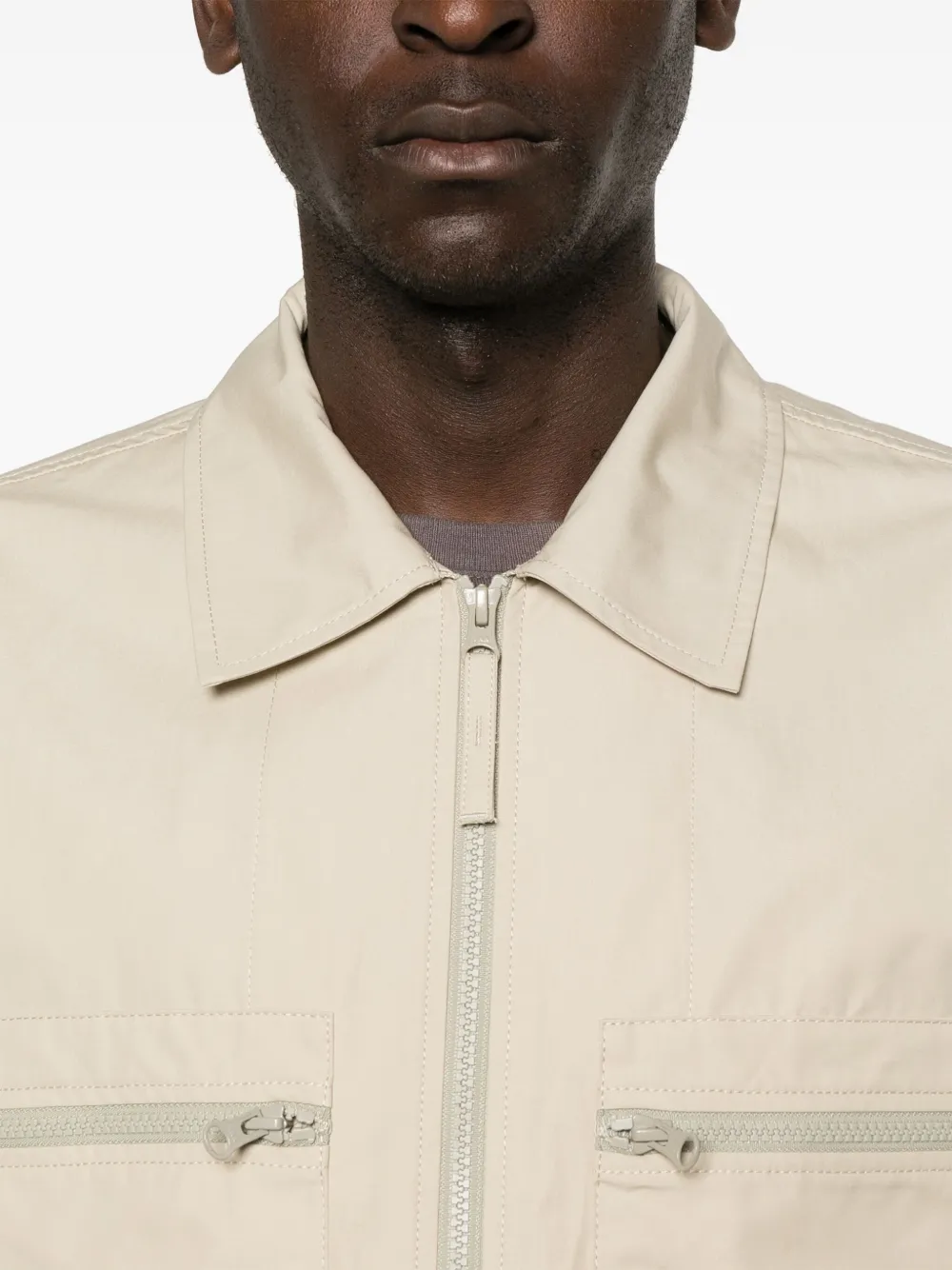 Подробнее о товаре: • светло-бежевый • органический хлопок • ветронепроницаемый материал • водоотталкивающий материал • косой воротник • два нагрудных кармана на молнии • длинные рукава • манжеты с застежкой на кнопки • съемный значок Compass • два прорезных кармана сбоку • регулируемые ремешки на поясе • прямой подол • QR-код подлинности • модель без подкладки • двусторонняя молния спереди