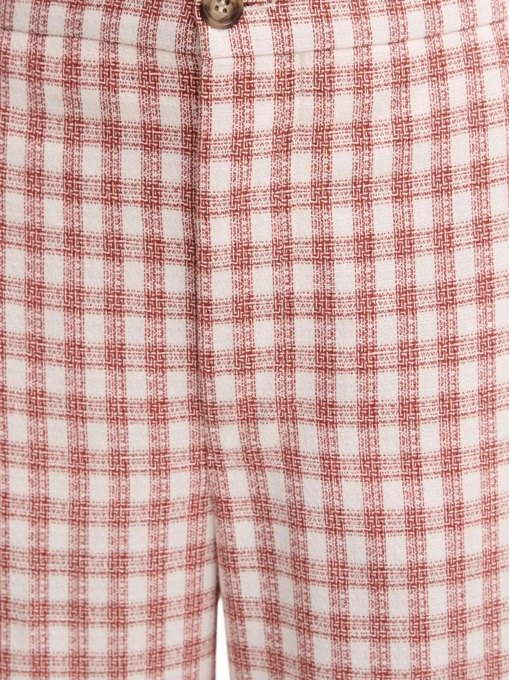 Красный клетчатый узор в клетку, застежка на пуговицы, прямой крой, высокая талия, тканый материал