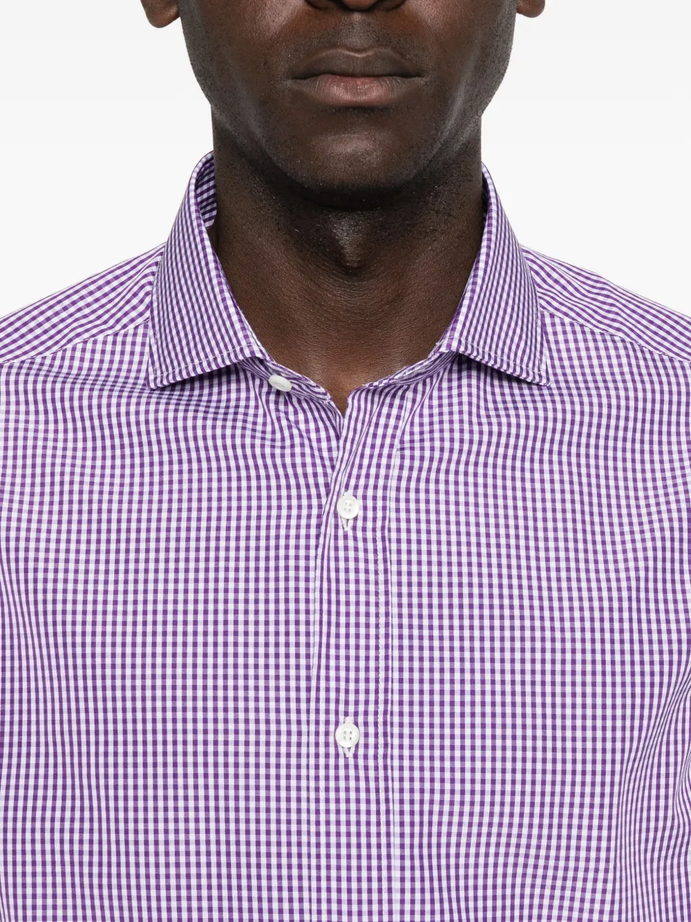 Рубашка в клетку гингем Brunello Cucinelli, фиолетовый