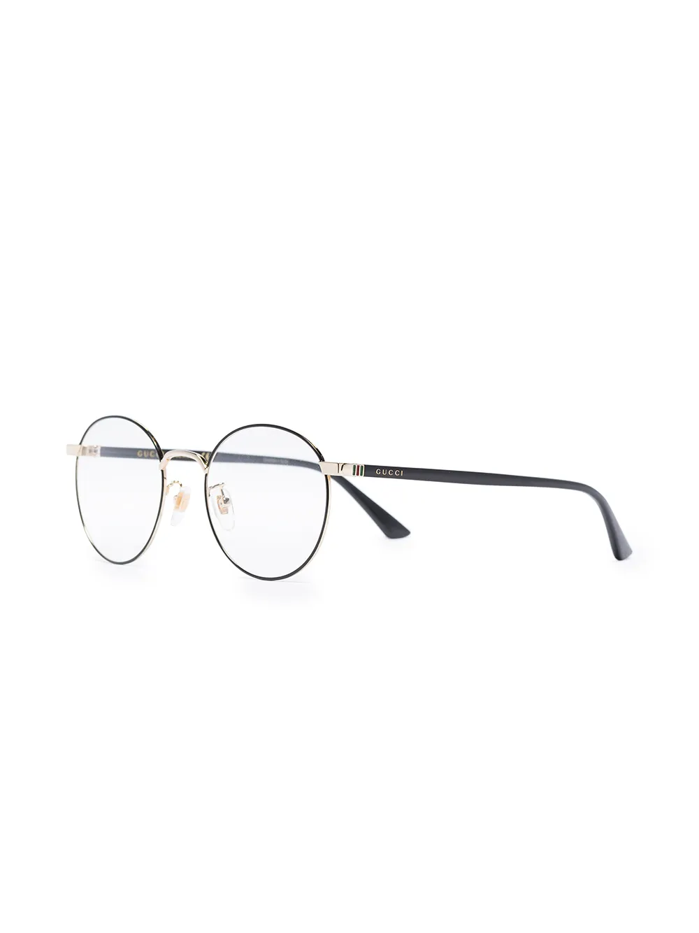 Золотистая фурнитура, овальная оправа, носоупоры, гравированный логотип на дужках, отделка Web, прямые дужки и дужки с закругленными концами. Цвет: черный. В комплект входит защитный чехол для очков. Обратите внимание, что на FARFETCH продаются оправы с линзами без диоптрий.