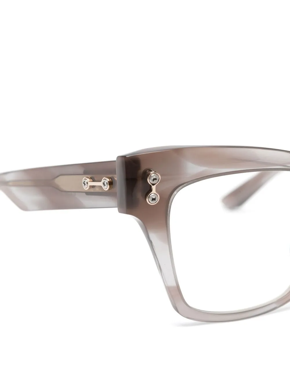 Серый, коричневый, ацетат, прозрачные линзы, прямоугольная оправа и закругленные дужки. Обратите внимание, что на FARFETCH продаются оправы с линзами без диоптрий.