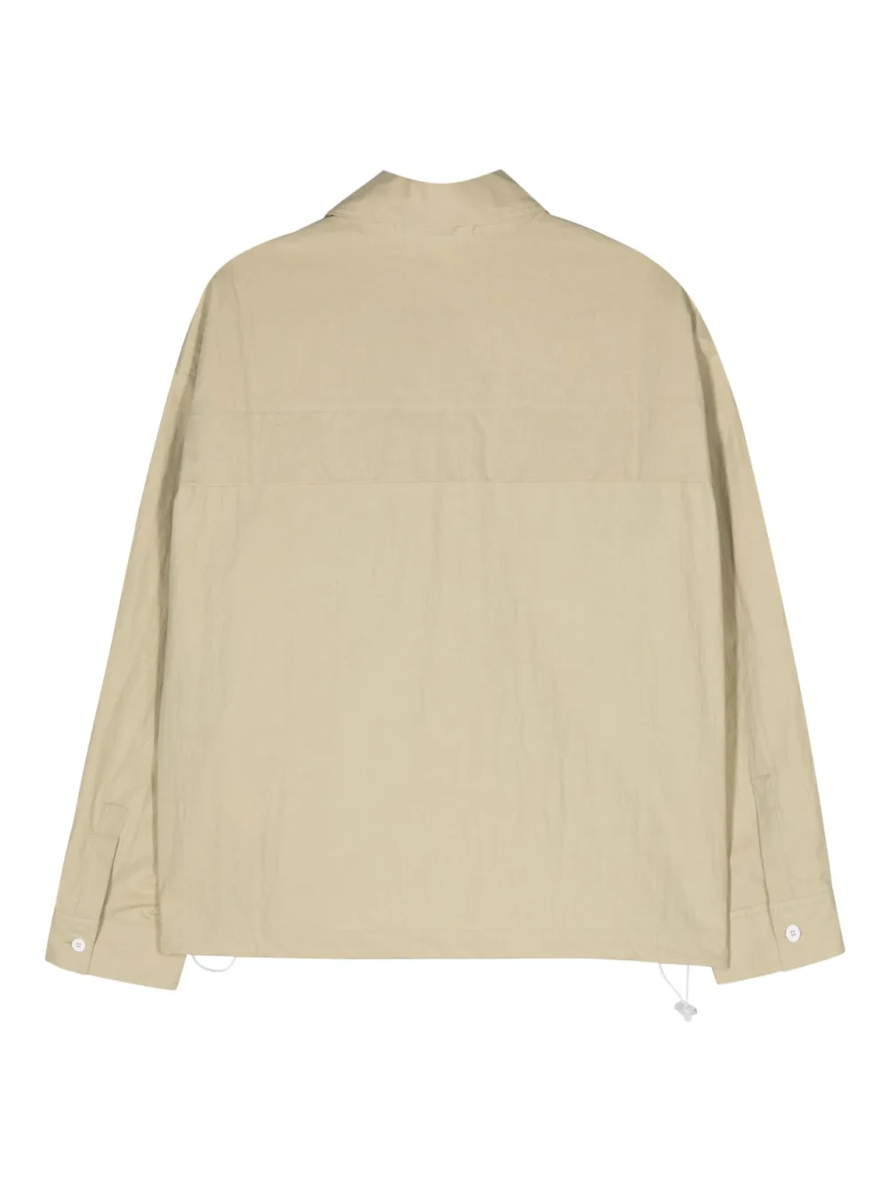 Подробнее о товаре: • бежевый • смесовый хлопок • жатый эффект • маленькая подвеска с логотипом • плоский заостренный воротник • застежка с пряжкой • приспущенные плечи • длинные рукава с манжетами на пуговицах • два передних кармана с клапанами • два накладных кармана спереди • подол с кулиской • Это унисекс-модель. Обратите внимание, что для нее используется мужская размерная сетка.