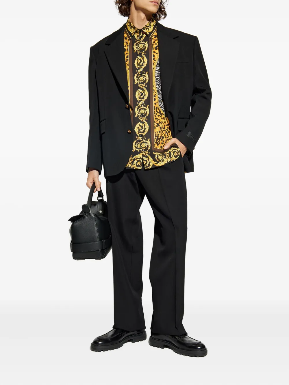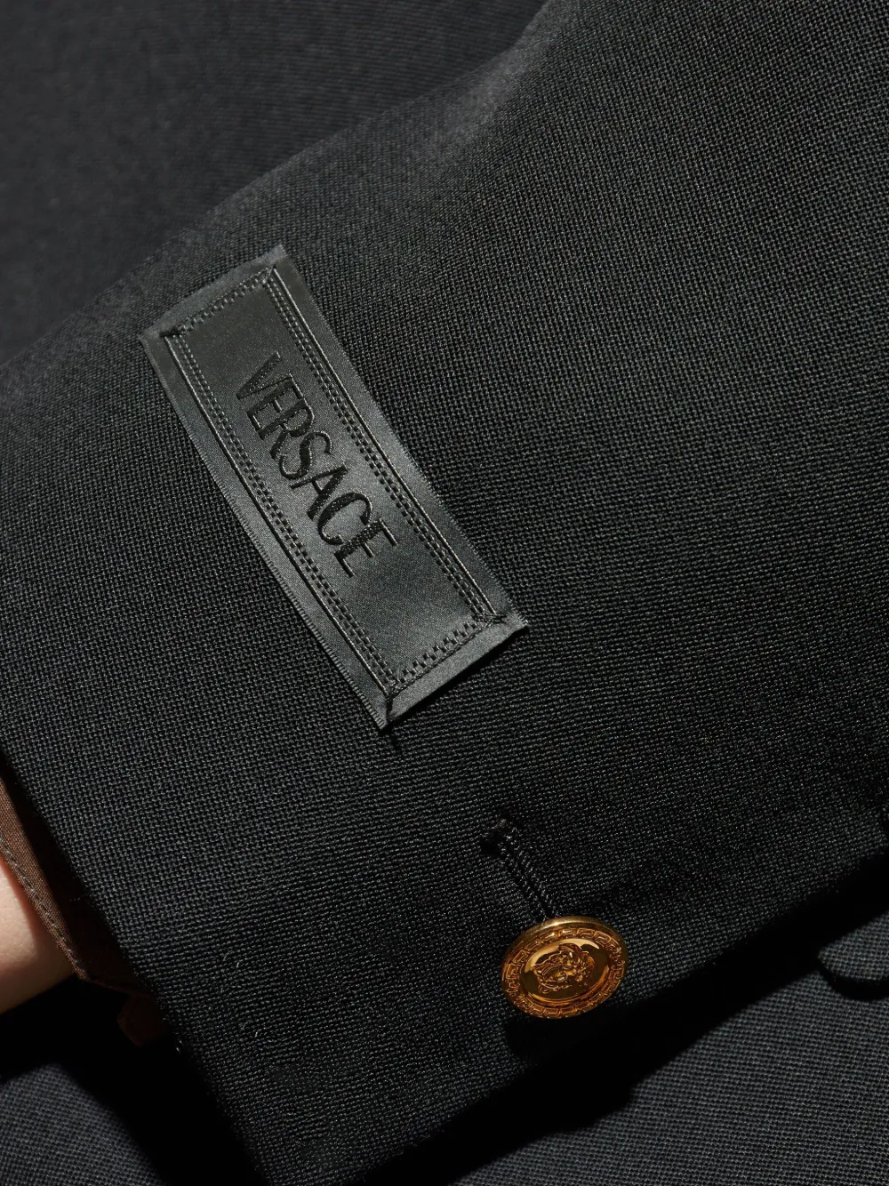 Шерстяной блейзер с золотыми пуговицами VERSACE, черный