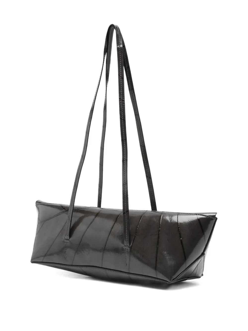 Верхние ручки в форме лодки из черной лакированной кожи с узором из листьев