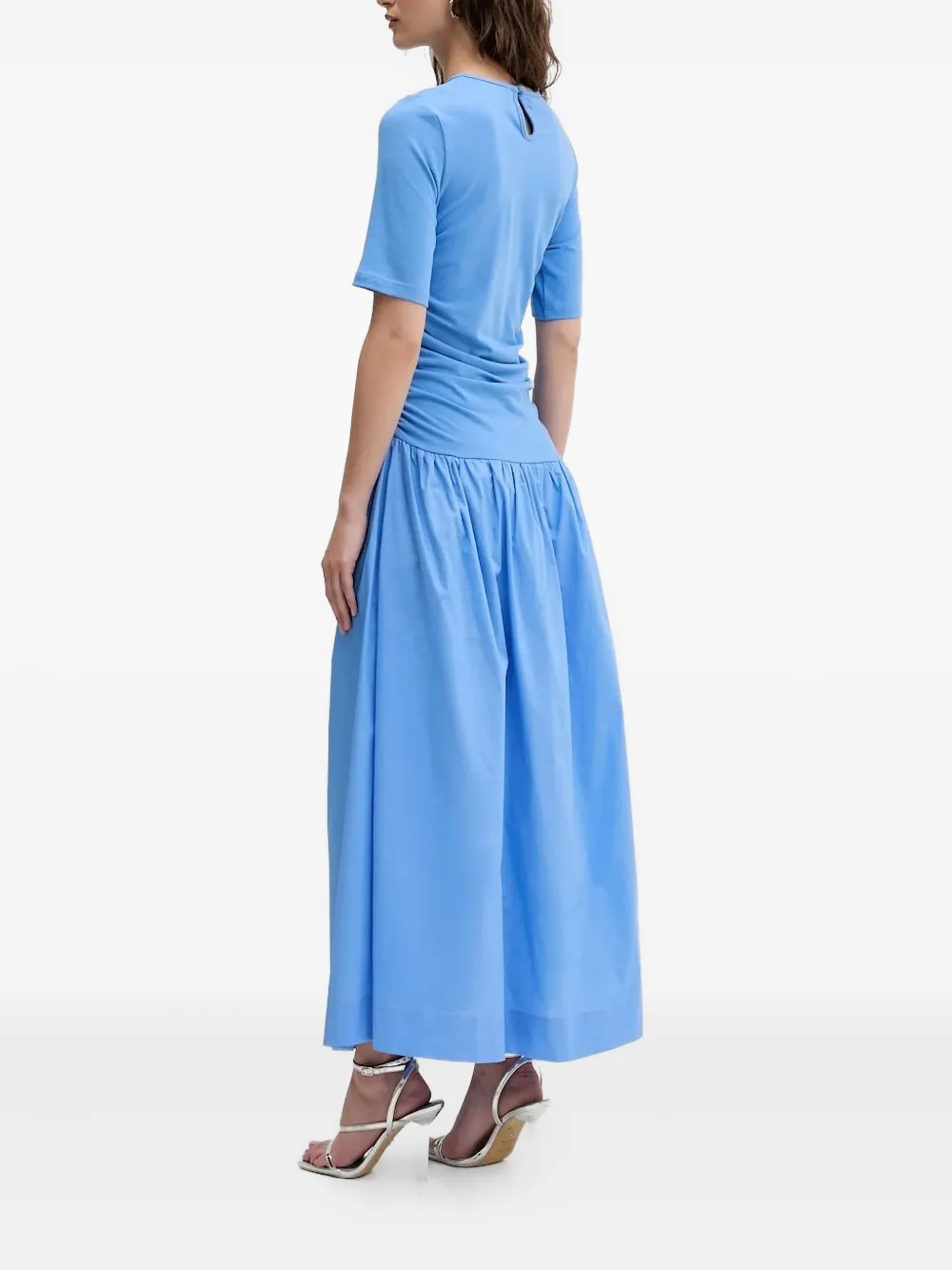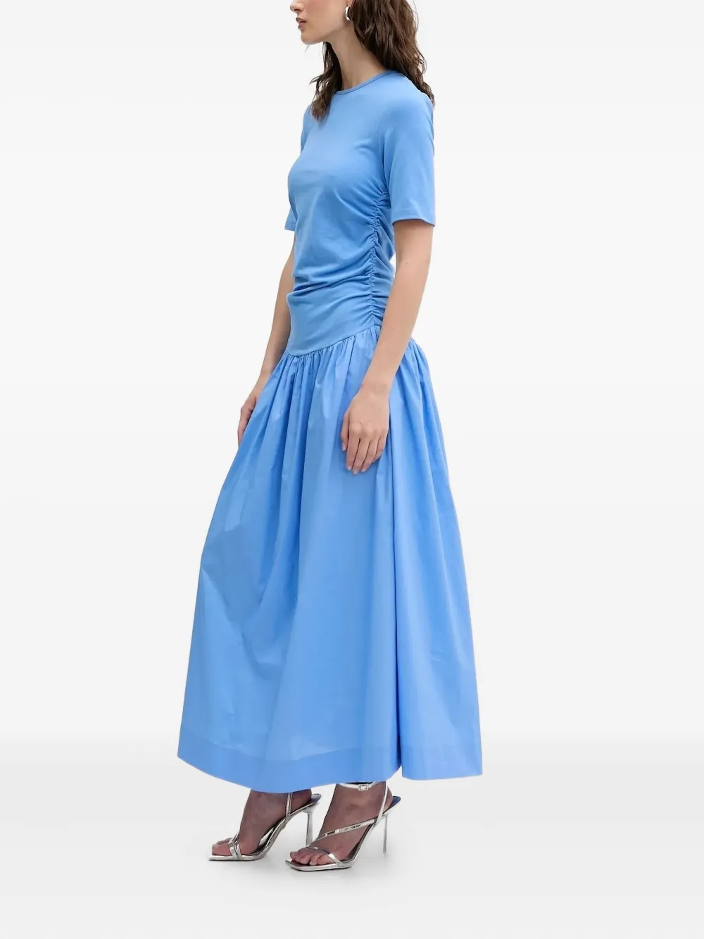 Юбка из поплина светло-голубого цвета с присборенной талией и короткими рукавами с круглым вырезом