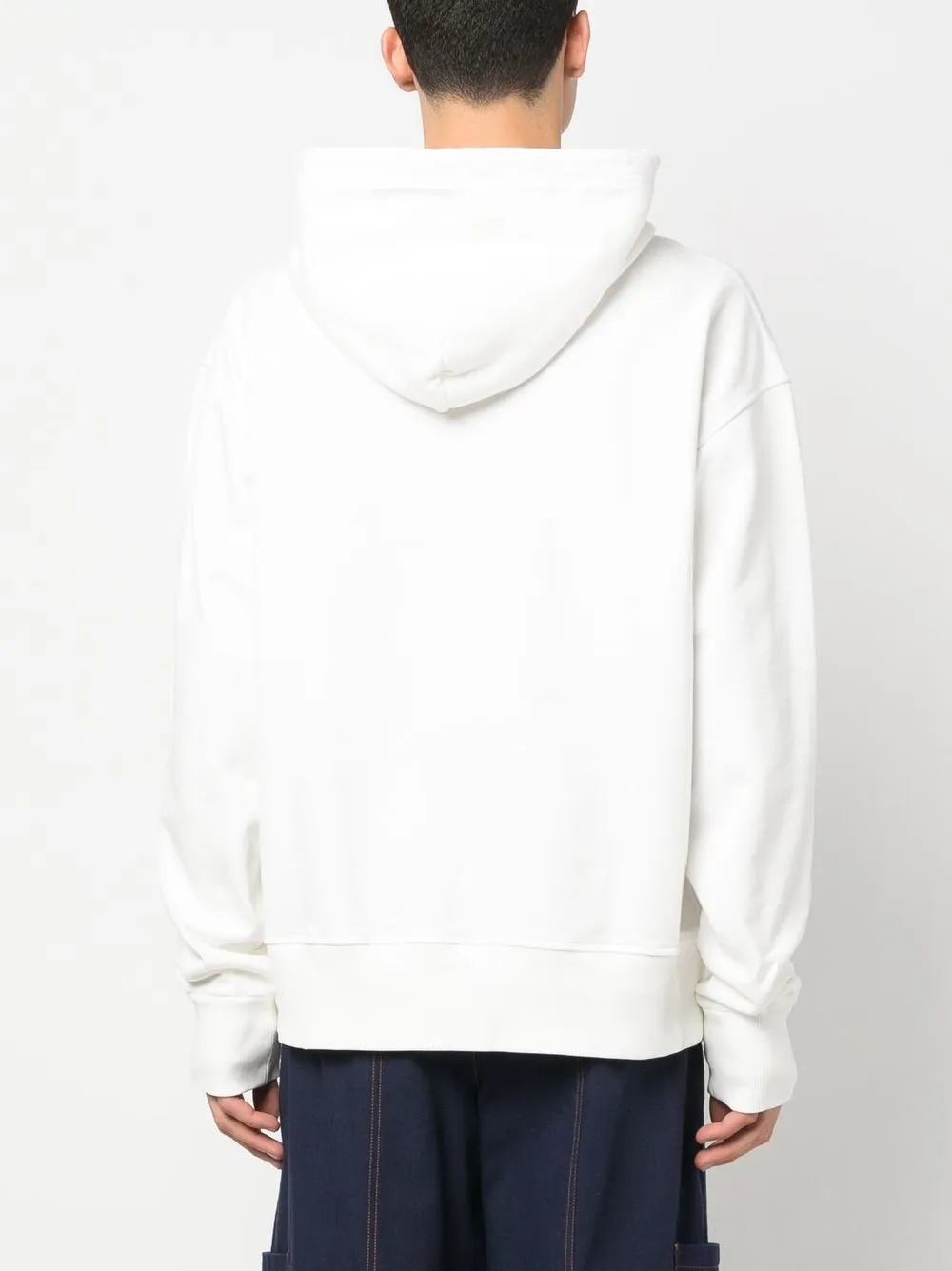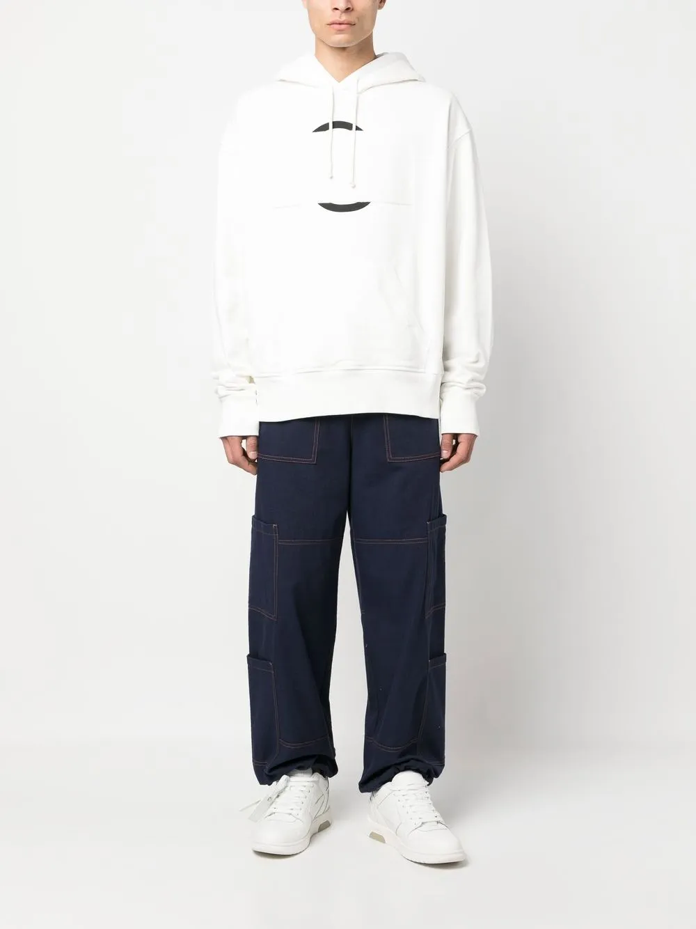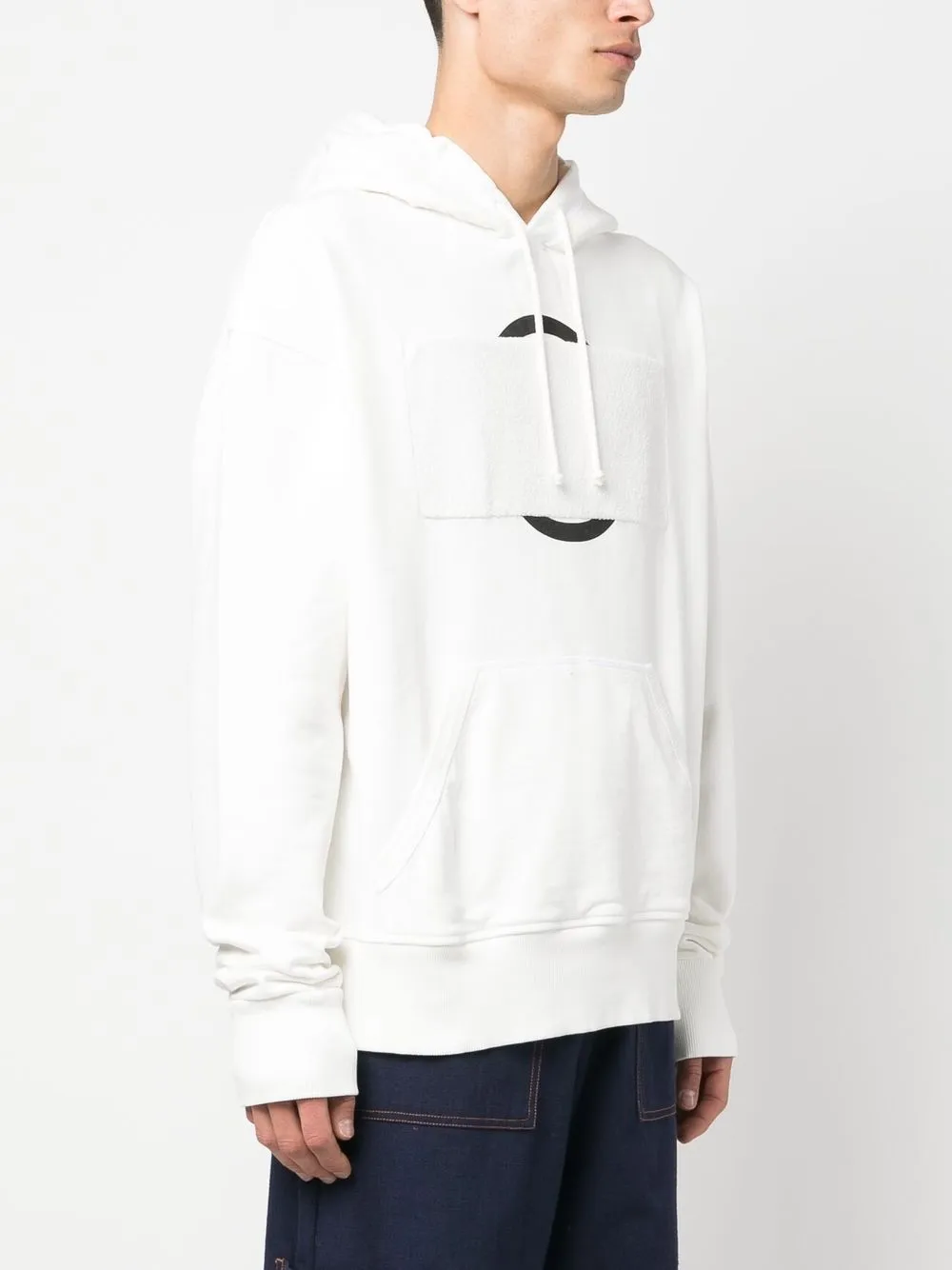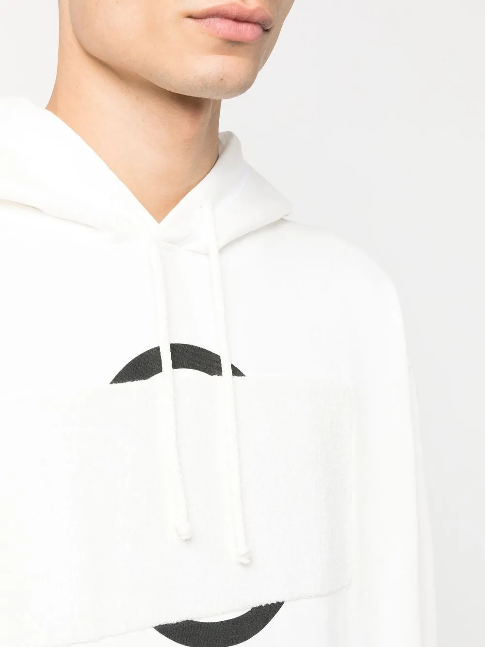 Белый, хлопок, флисовый материал, графичный принт спереди, затягивающийся на шнурок капюшон, длинные рукава, рукава с узкими манжетами, карман-муфта и прямой подол.