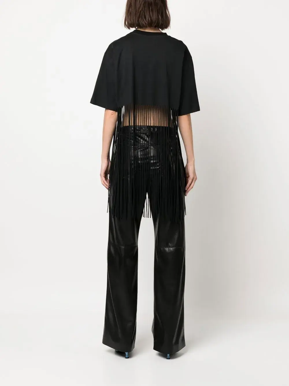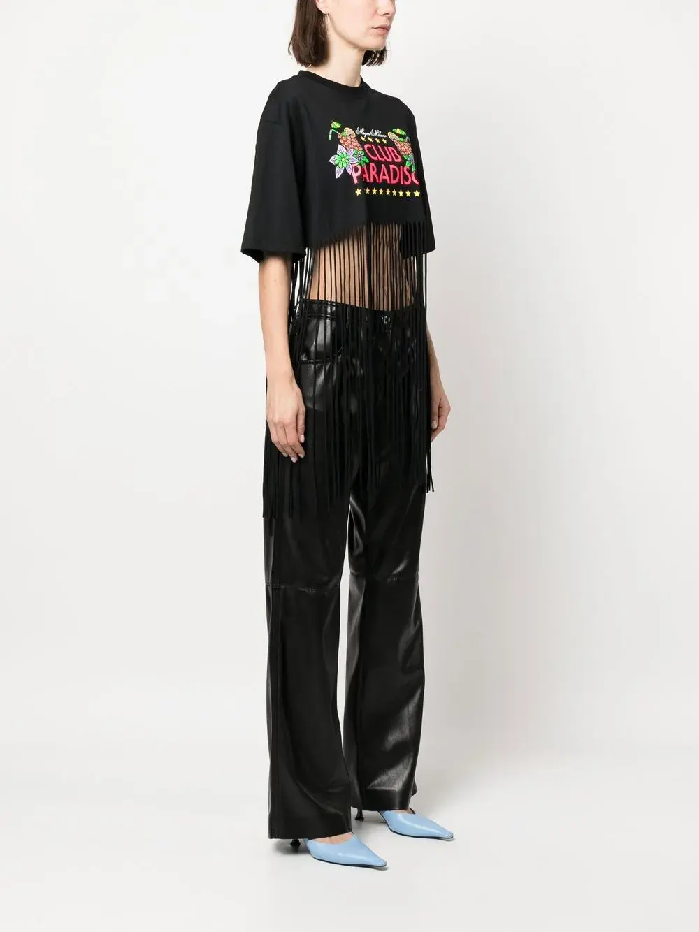 Черный, хлопок, ткань джерси, графичный принт спереди, рукава по локоть, укороченная длина и необработанные детали.
