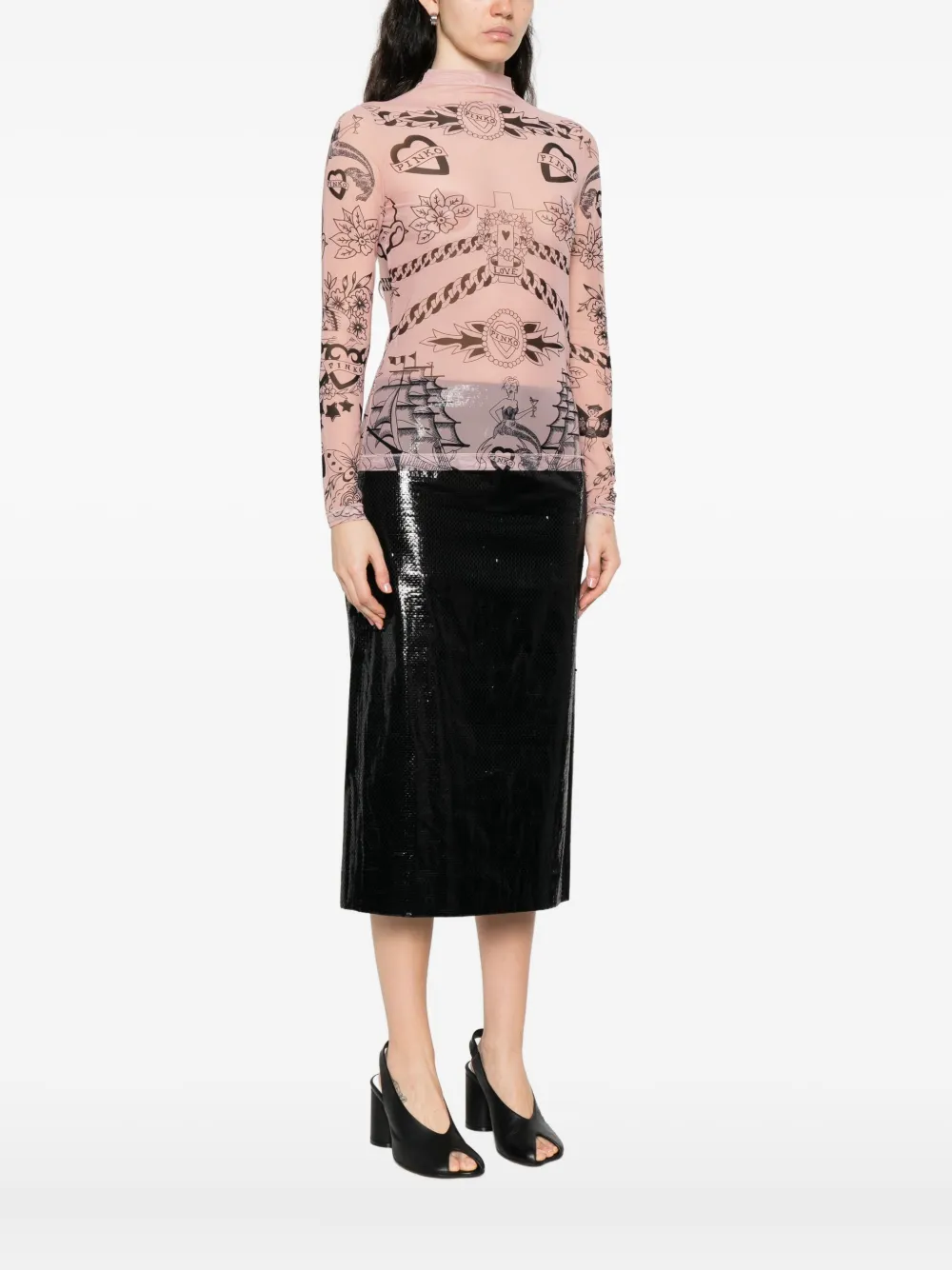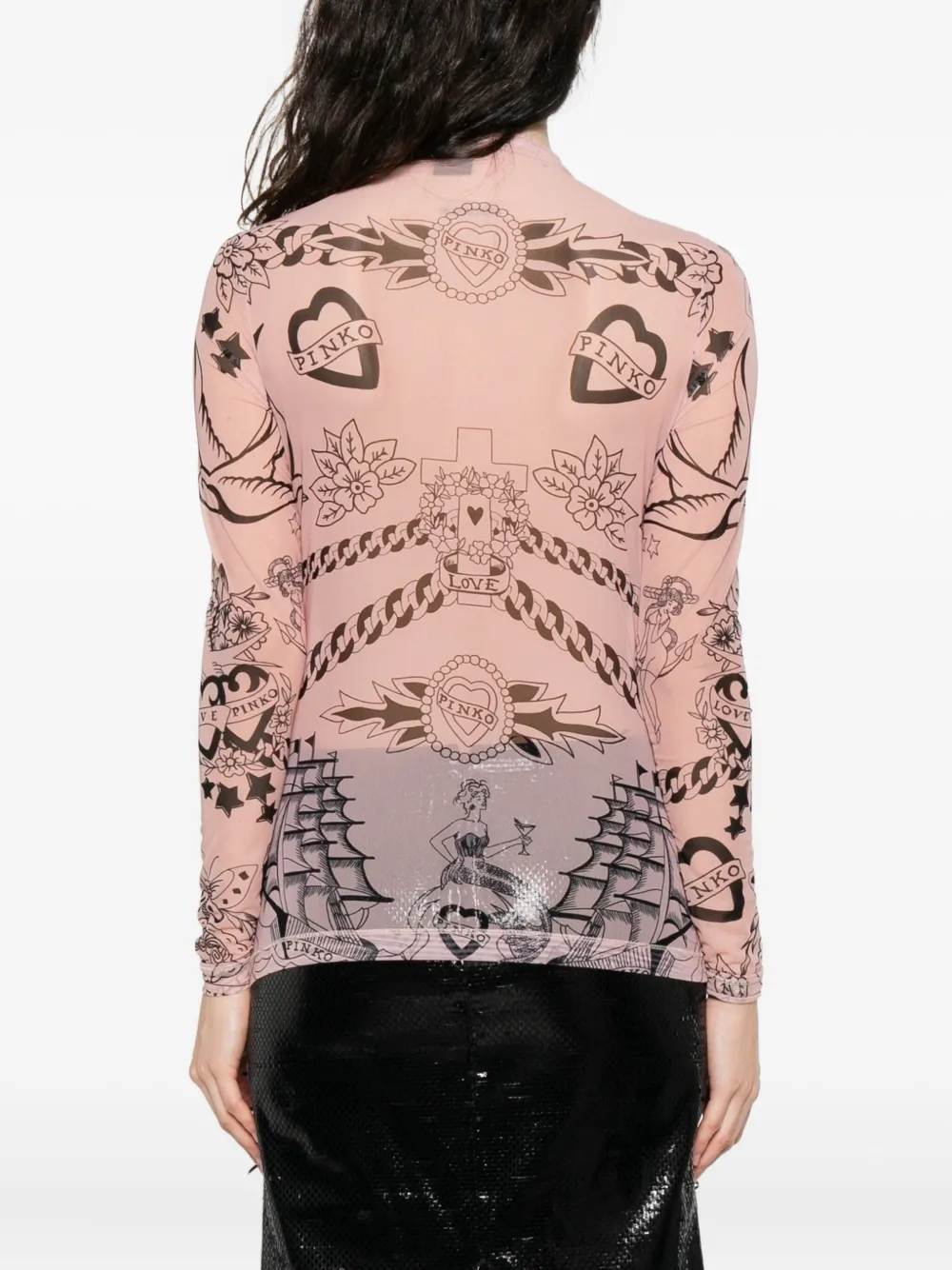 Бледно-розовый принт с татуировкой, длинные рукава, высокий воротник, логотип
