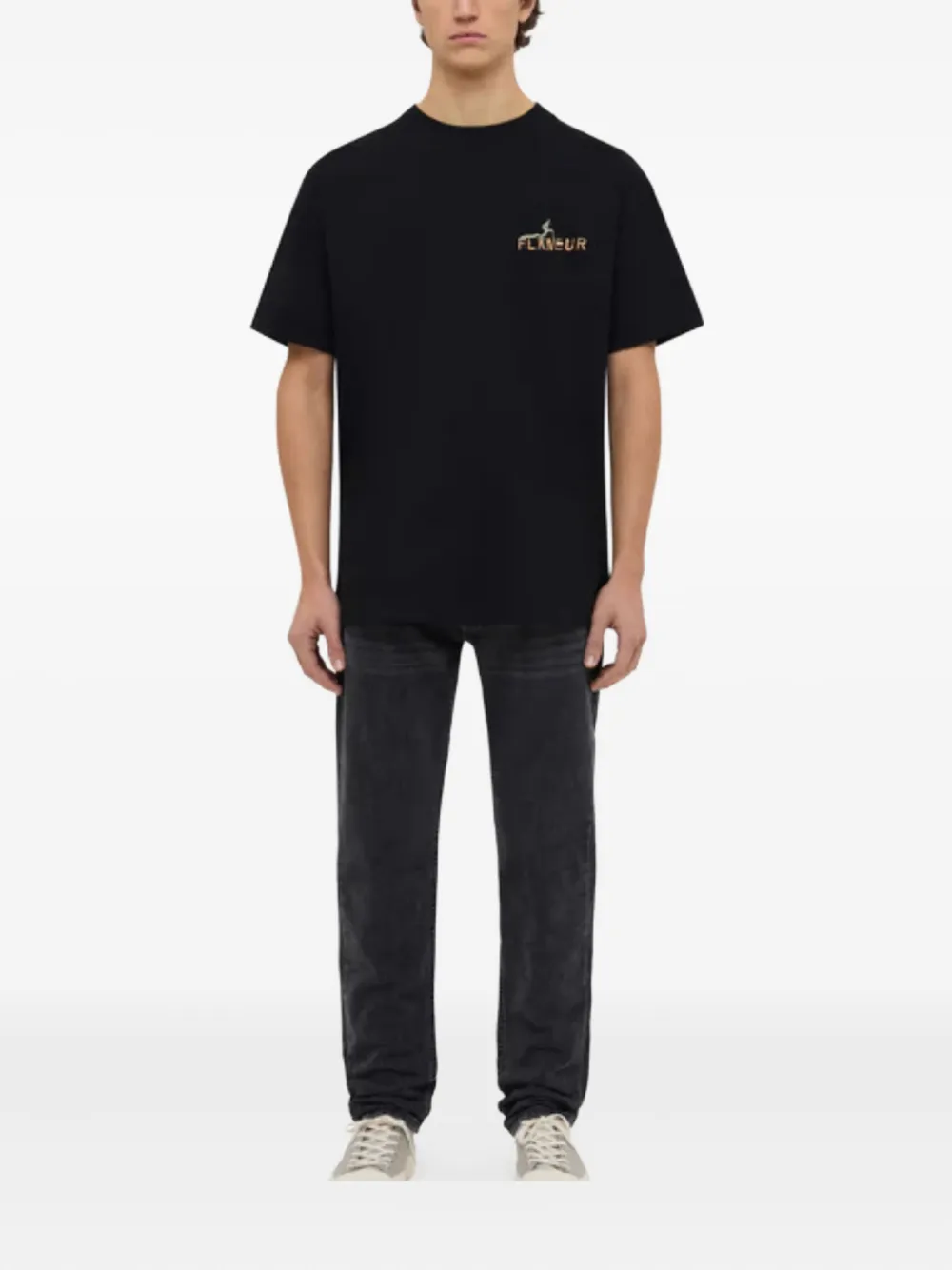 Черный, с короткими рукавами, круглым вырезом, с графическим принтом спереди, с графическим принтом сзади, хлопок