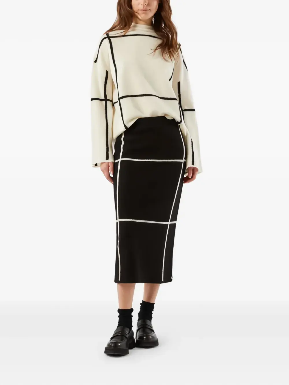 Прямой подол с черным сетчатым узором