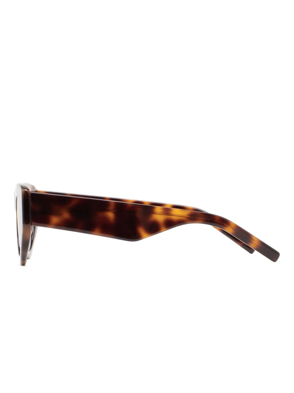 Коричневая оправа «кошачий глаз», тонированные линзы с черепаховым узором. Очки поставляются с защитным футляром.
