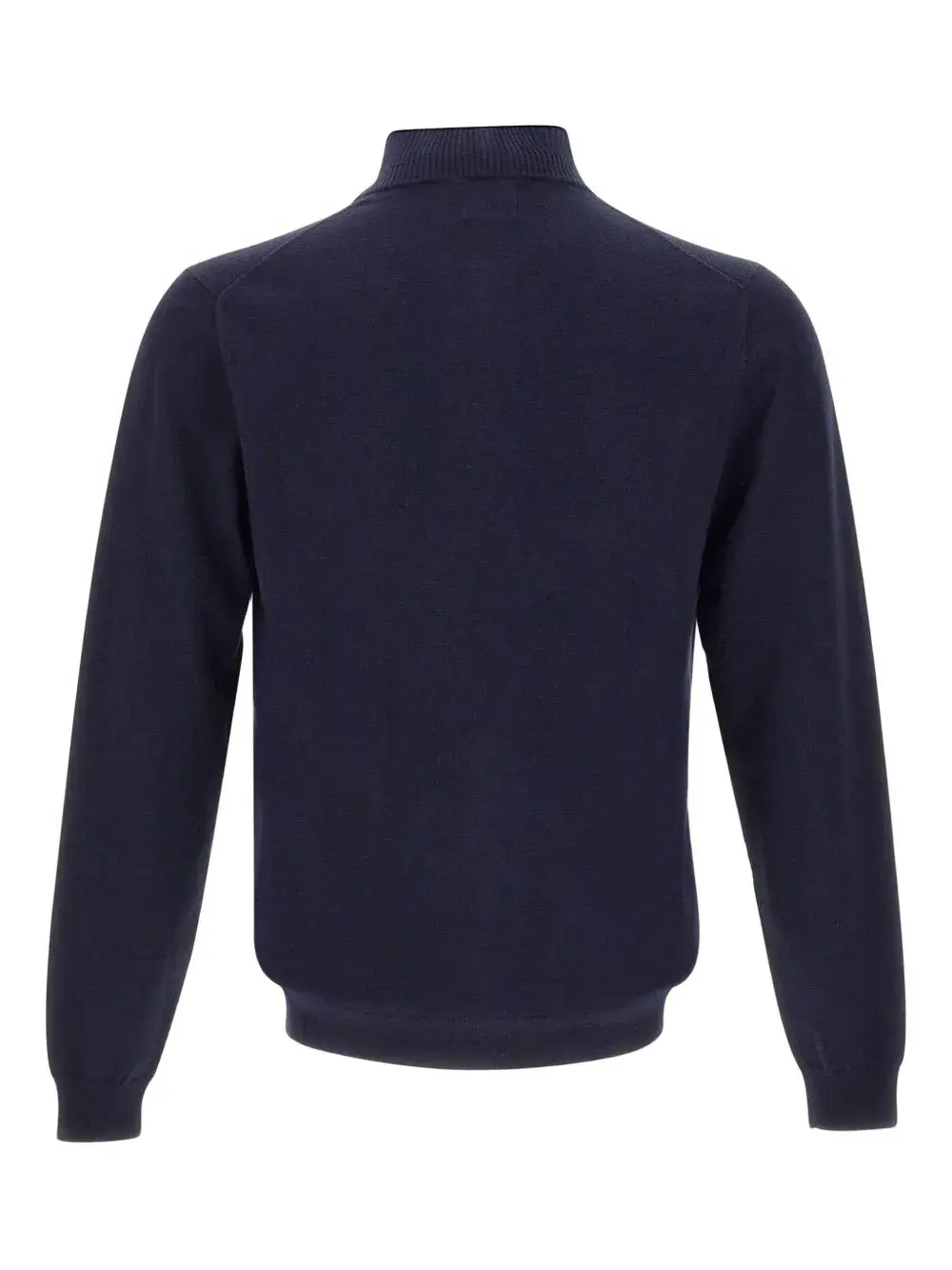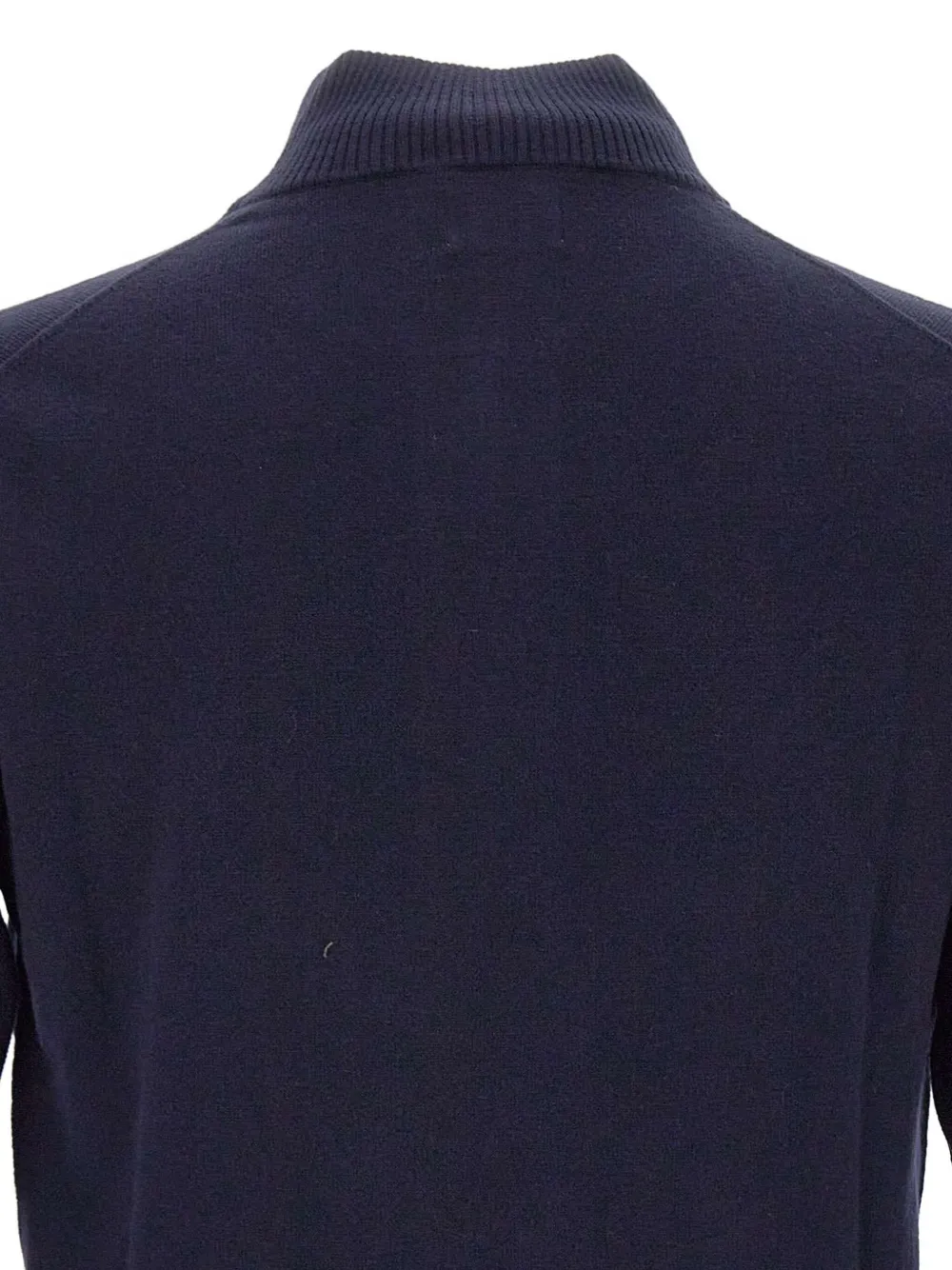 Темно-синяя застежка-молния до середины бедра, ребристые края, длинные рукава, воротник-стойка, вышитый логотип.