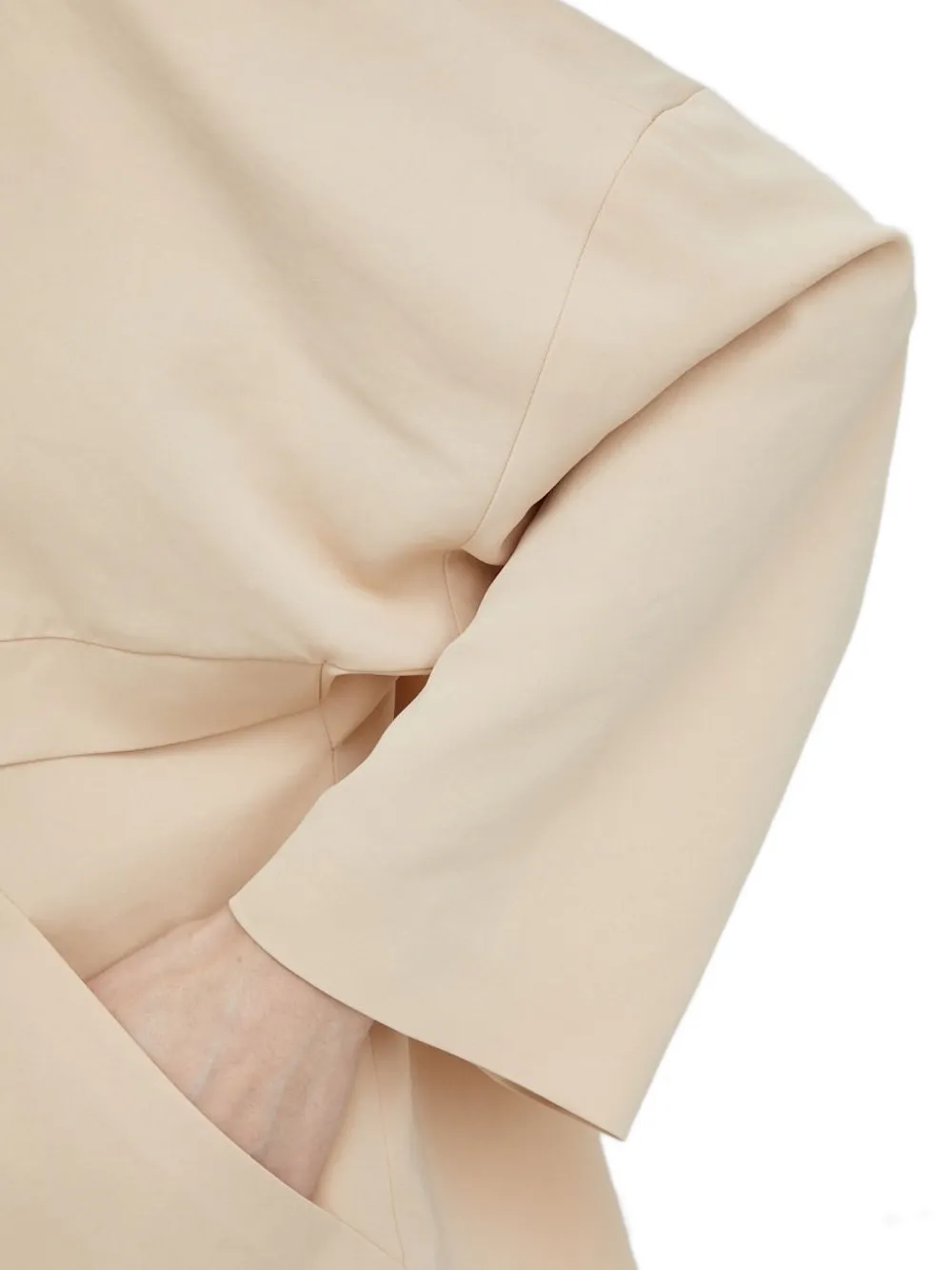 Бежевый, с застежкой-молнией до середины бедра, длинные рукава.
