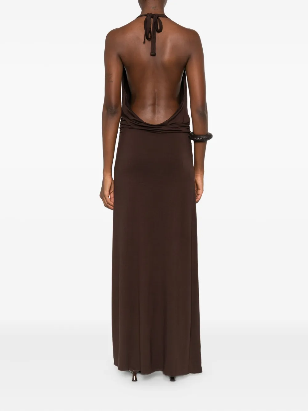 Коричневый воротник-халтер с открытой спиной и присборенной талией