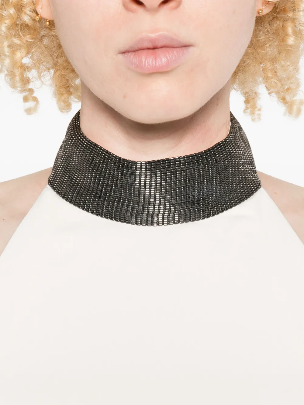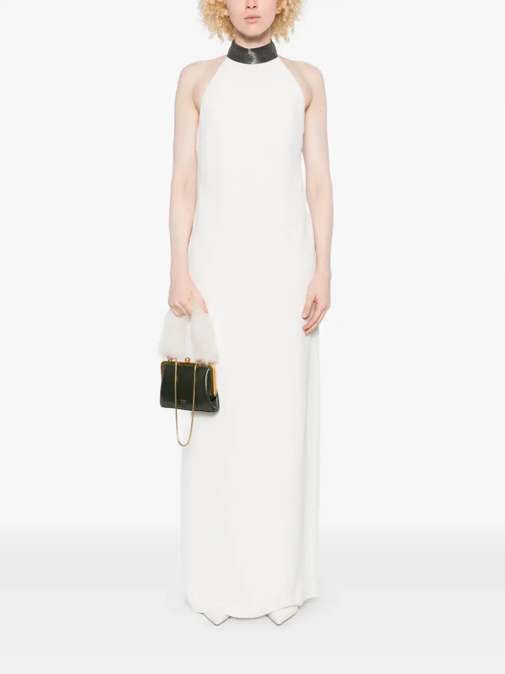 Платье с халтернеем и декором Brunello Cucinelli, белый