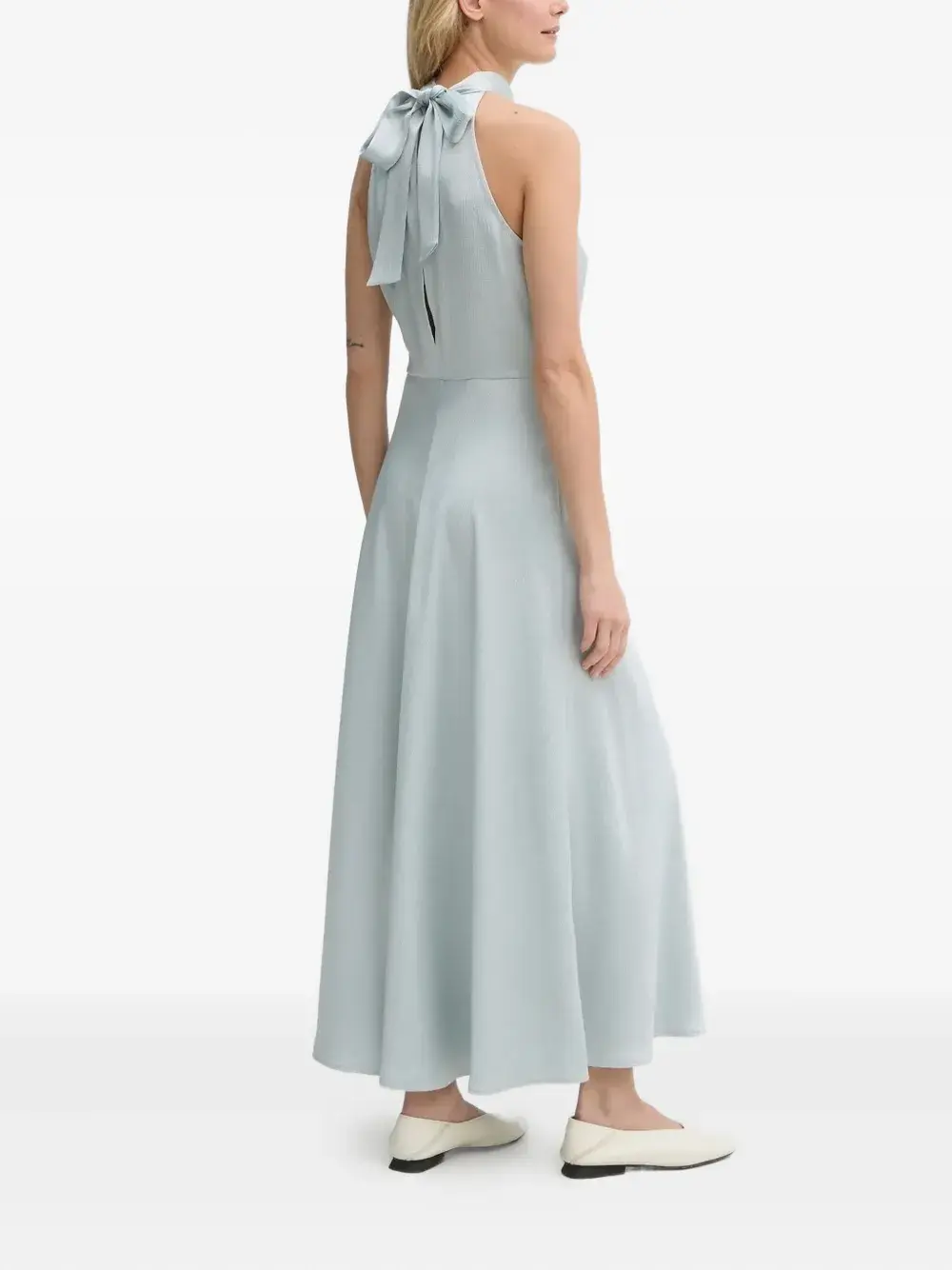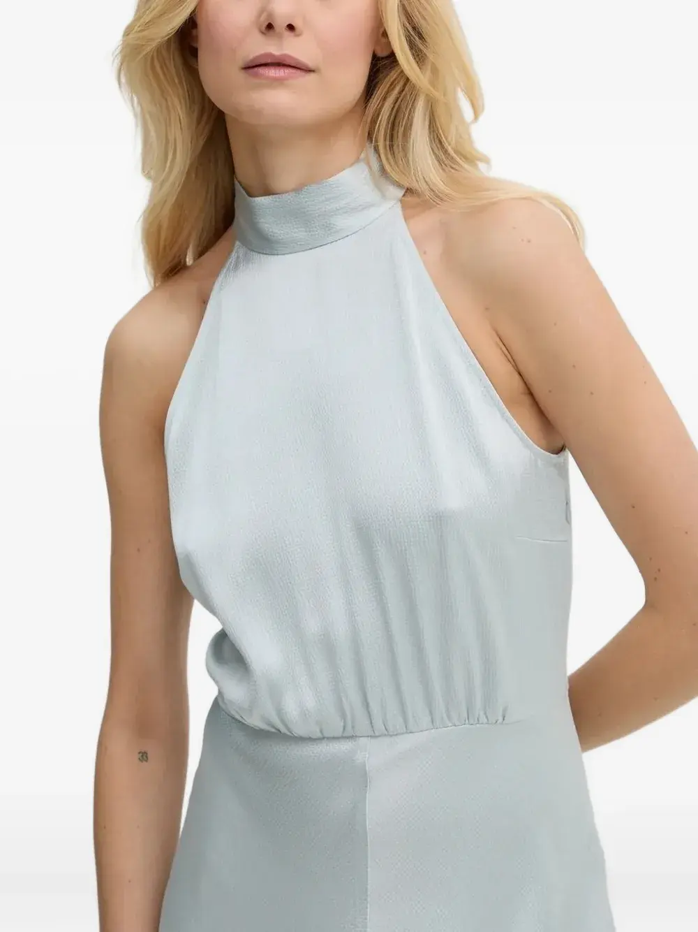 Юбка А-силуэта без рукавов с халтер-воротником светло-голубого цвета, застежка-бабочка