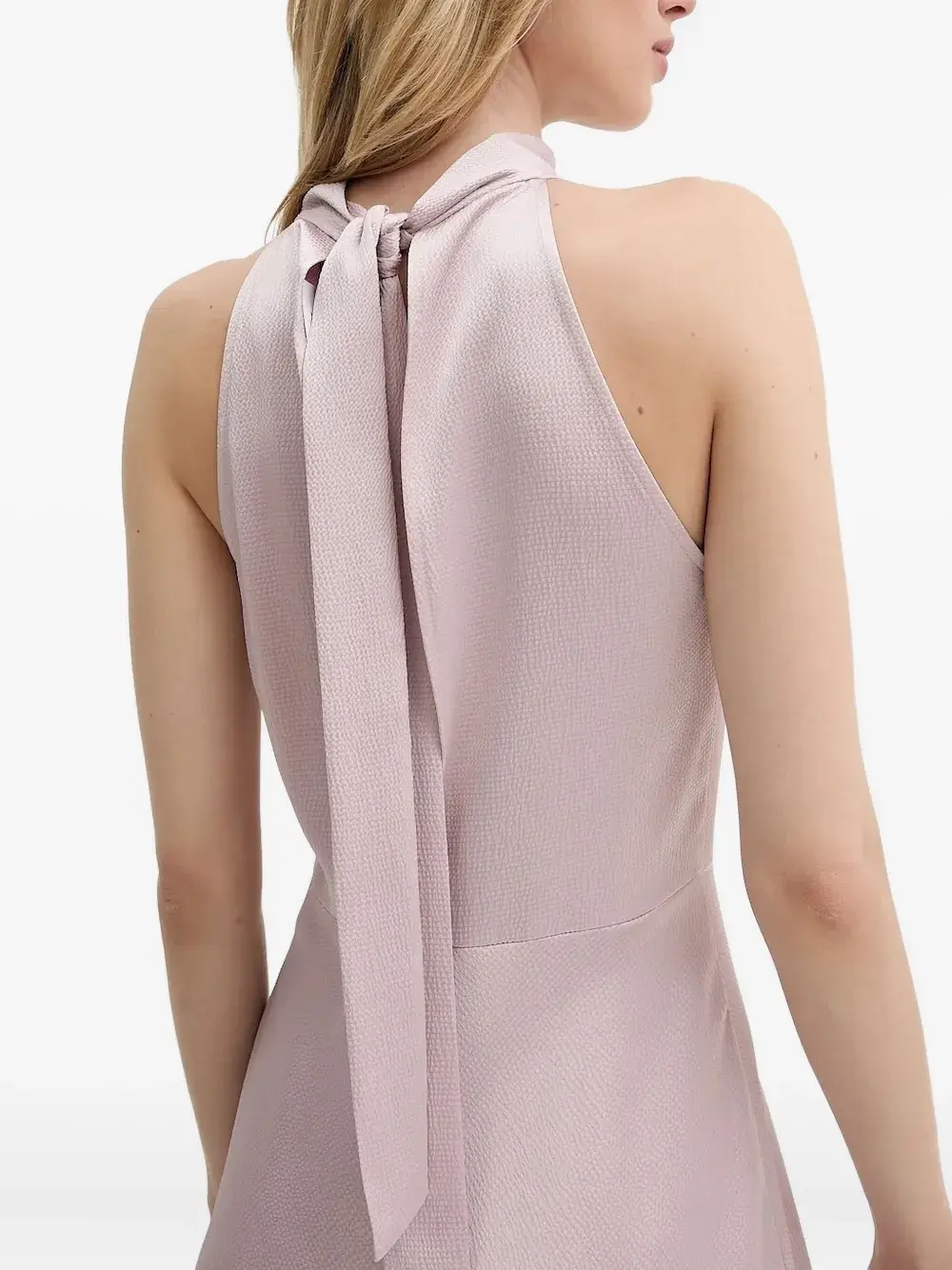 Юбка А-силуэта светло-розового цвета без рукавов с халтер-воротником, завязывающаяся сзади.