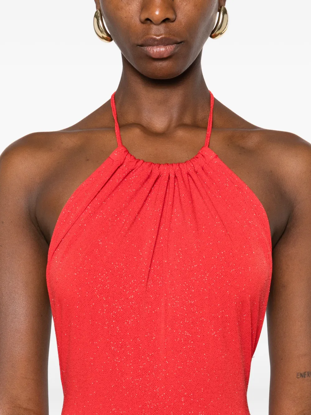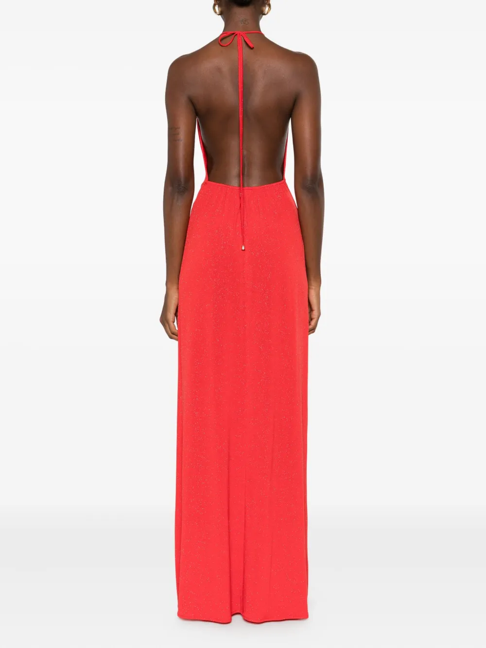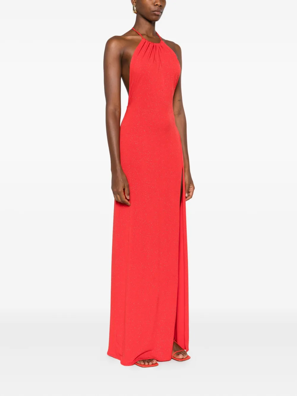 Красный топ-халтер с разрезами по бокам, длина макси