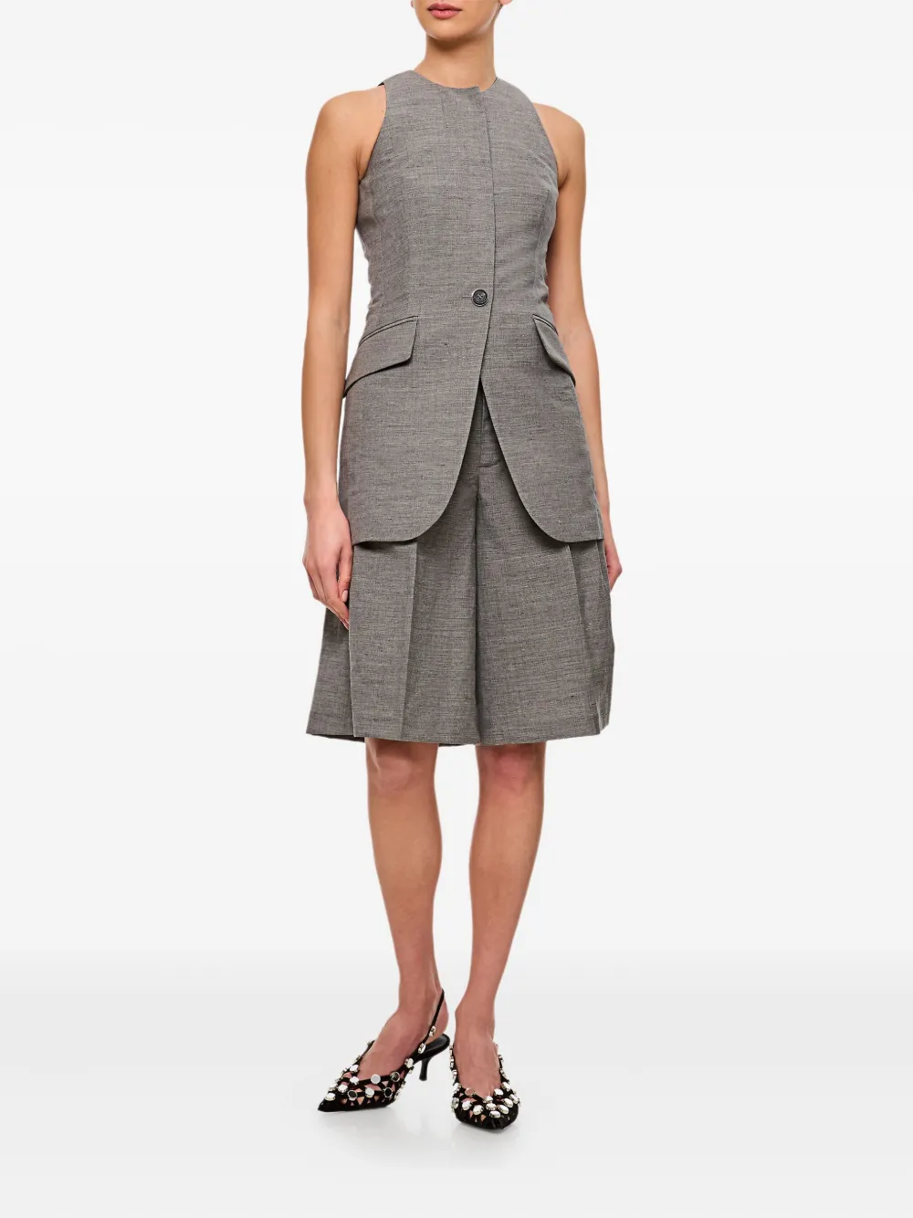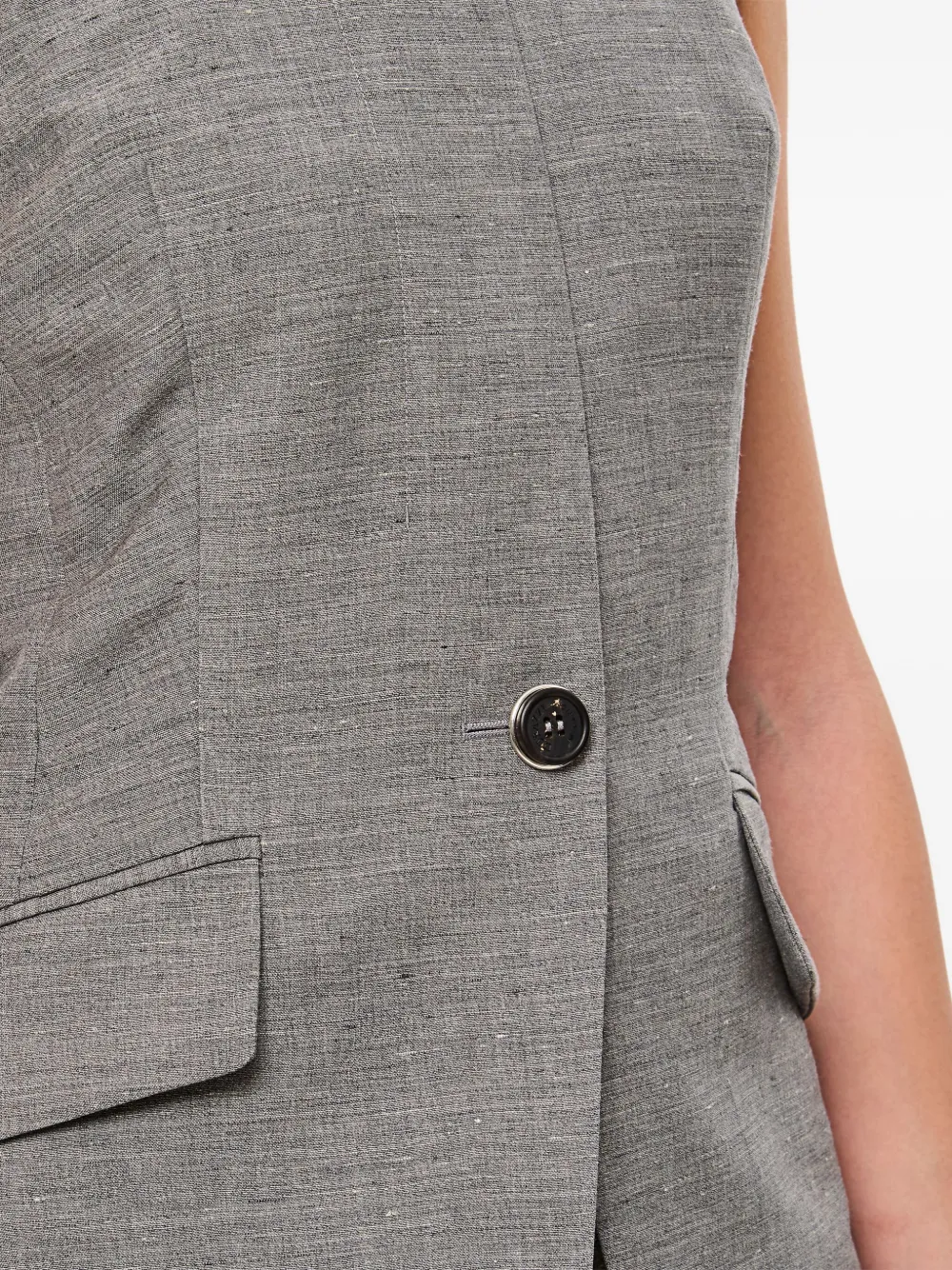 Серый жакет-халтер, застежка на одну пуговицу, без рукавов, пошитый по индивидуальному заказу