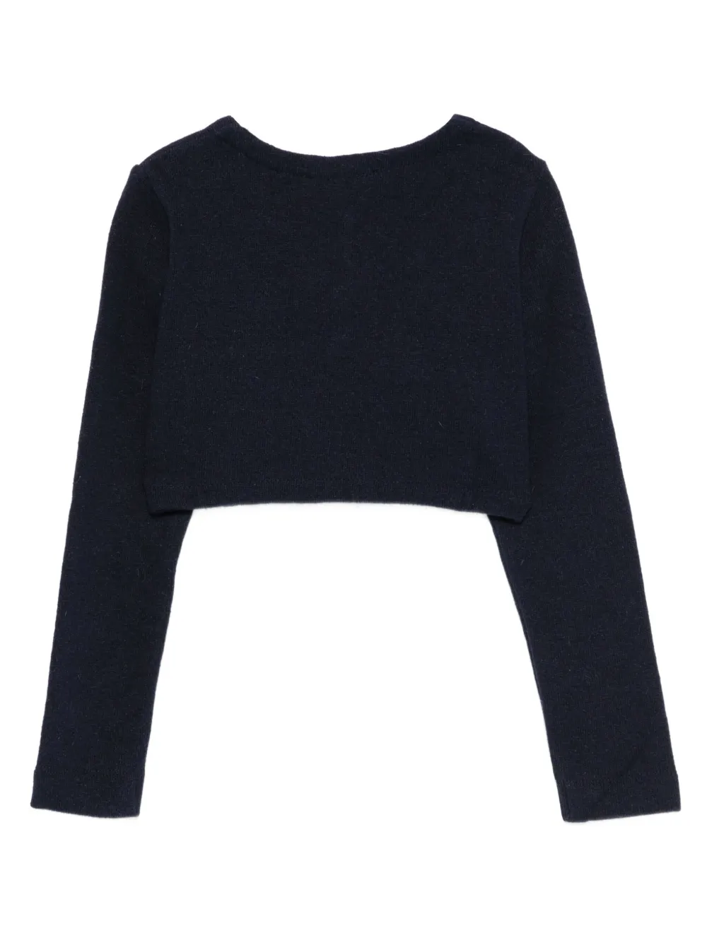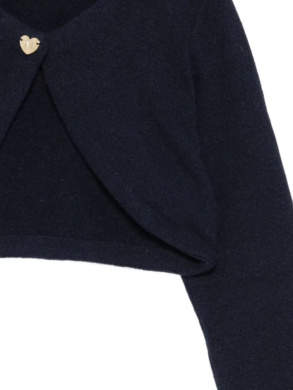 Темно-синяя шерстяная модель с пуговицами в форме сердца, длинными рукавами, открытым передом, укороченной длиной
