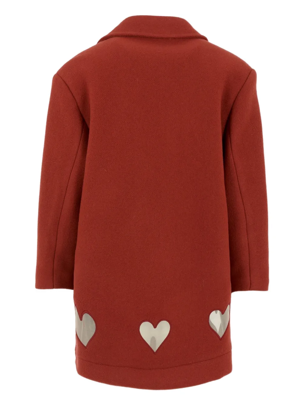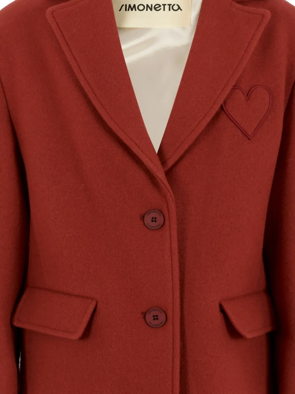 Детали в форме сердца из красной шерстяной смеси, застежка на пуговицы, нашивка в форме сердца, отворот с зазубринами