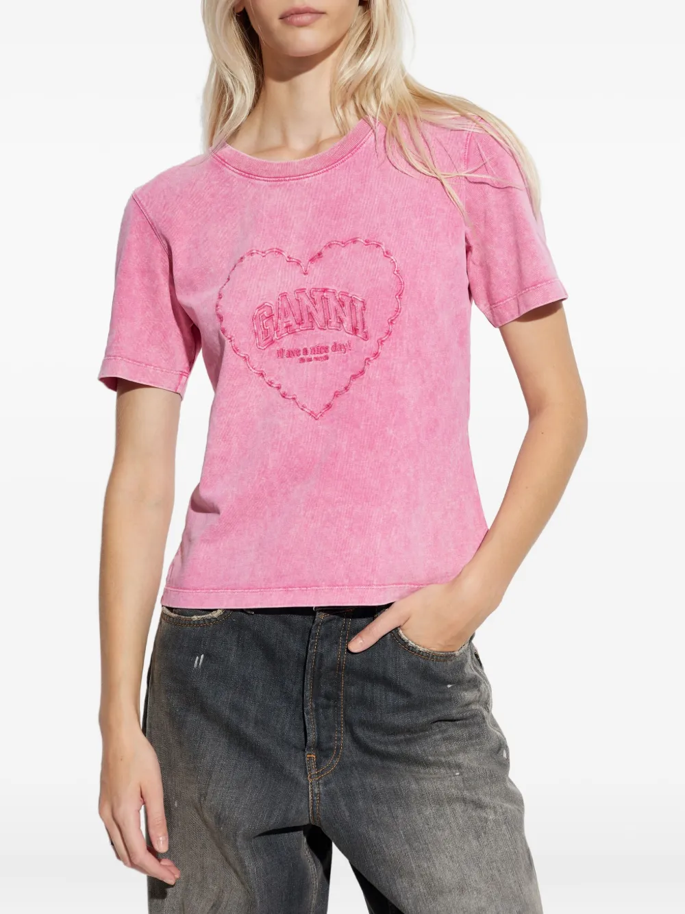Футболка с вышитым сердцем GANNI, розовый 11 351₽