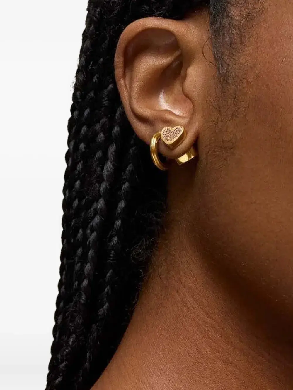 Украшение в виде сердца золотистого тона, полированная отделка. Серьги продаются парой.