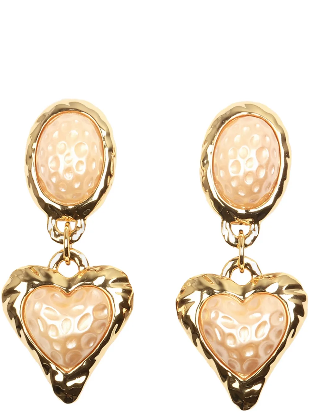 Застёжка-клипса в форме сердца с золотым чеканным эффектом. Ежедневное использование и воздействие внешних факторов могут привести к потере блеска драгоценных камней и золотых поверхностей. Для ухода используйте специальные неабразивные средства, предназначенные для чистки ювелирных изделий.