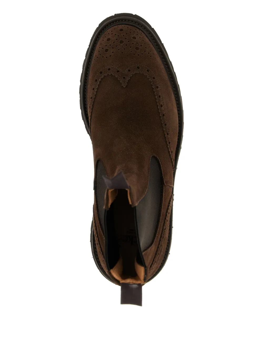 Коричневые замшевые броги с эластичной вставкой на щиколотке, резиновой подошвой, дизайн ботинок челси