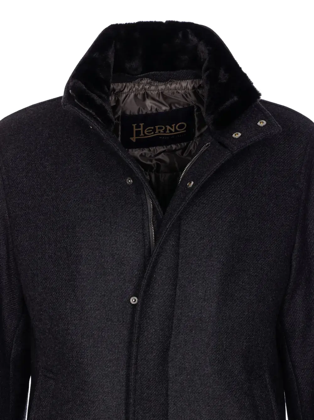 Пальто Herno антрацитового цвета с застежкой на молнию и пуговицы, съемным воротником из овчины, боковыми карманами, высоким воротом 75% шерсть, 25% полиамид, 100% полиэстер, 100% полиэстер Пальто Herno антрацитового цвета с застежкой на молнию и пуговицы, съемным воротником из овчины, боковыми карманами, высоким воротом 75% шерсть, 25% полиамид, 100% полиэстер, 100% полиэстер 75% шерсть, 25% полиамид, 100% полиэстер, 100% полиэстер