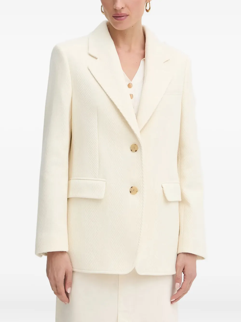 Застежка на пуговицы с узором «ёлочка» кремового цвета, отложной воротник, прорезные карманы, длинные рукава