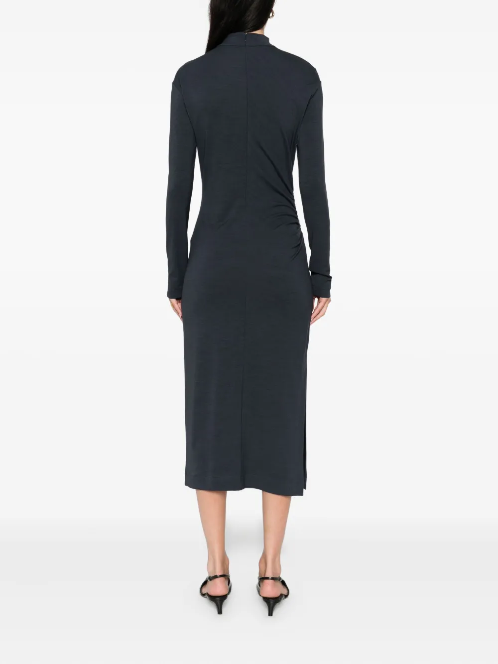Платье миди с высоким воротником и сборками Brunello Cucinelli, синий