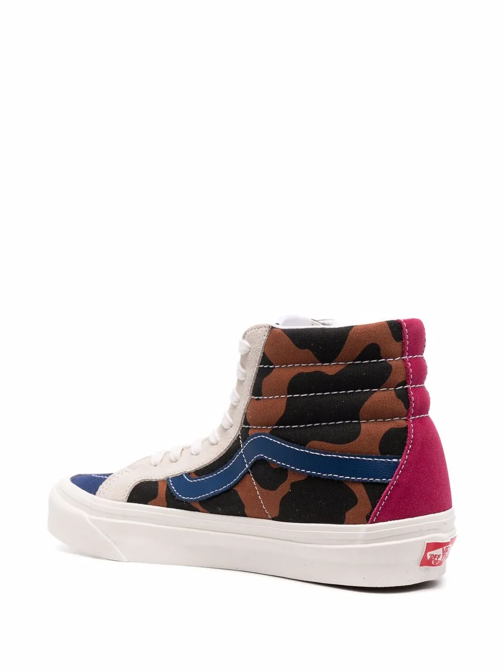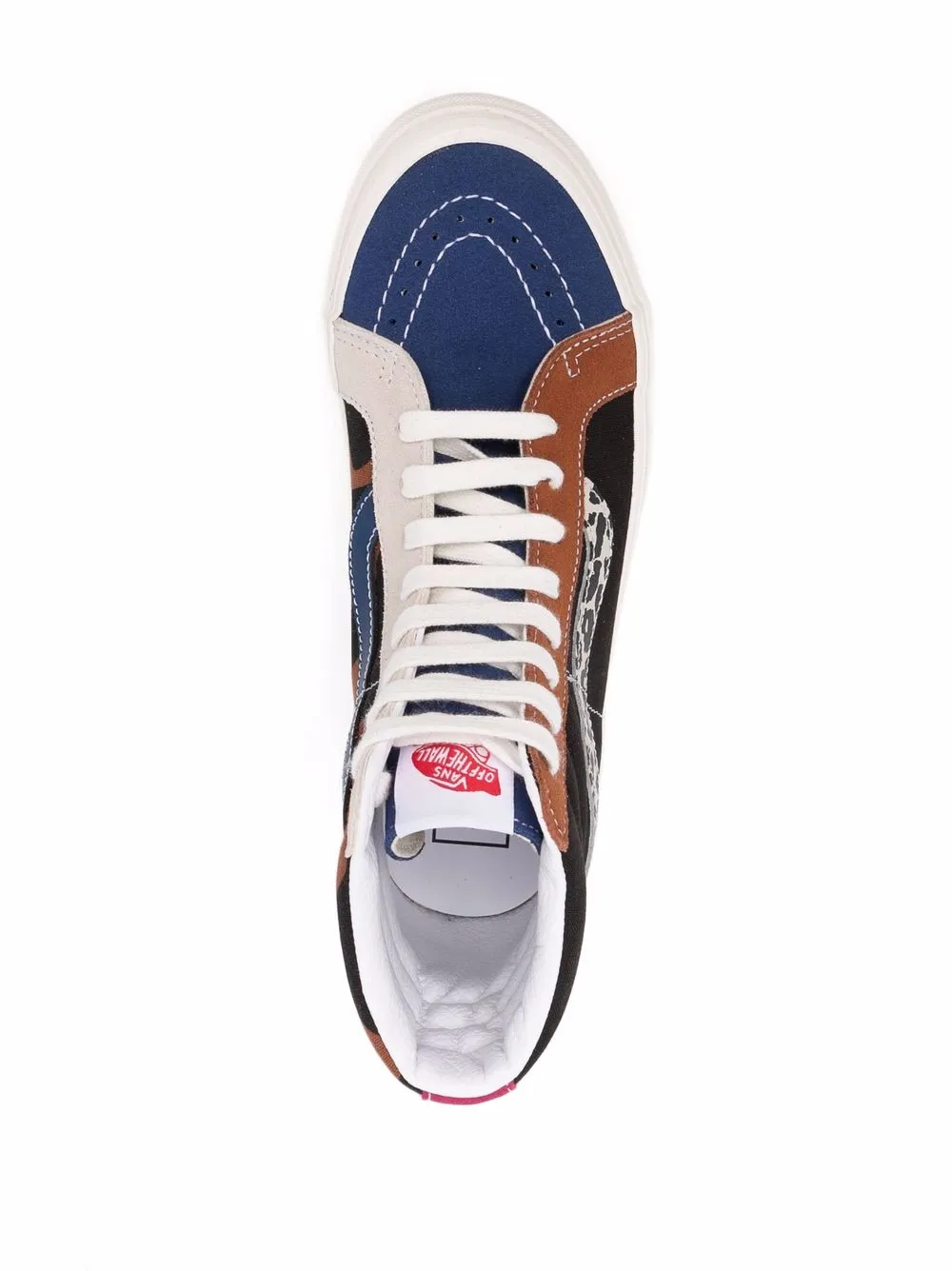 Дизайн колор-блок, закругленный носок, шнуровка спереди, длина по щиколотку и плоская резиновая подошва.