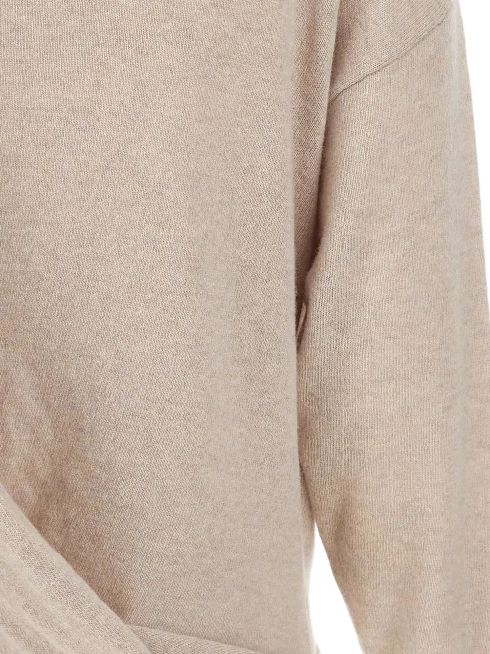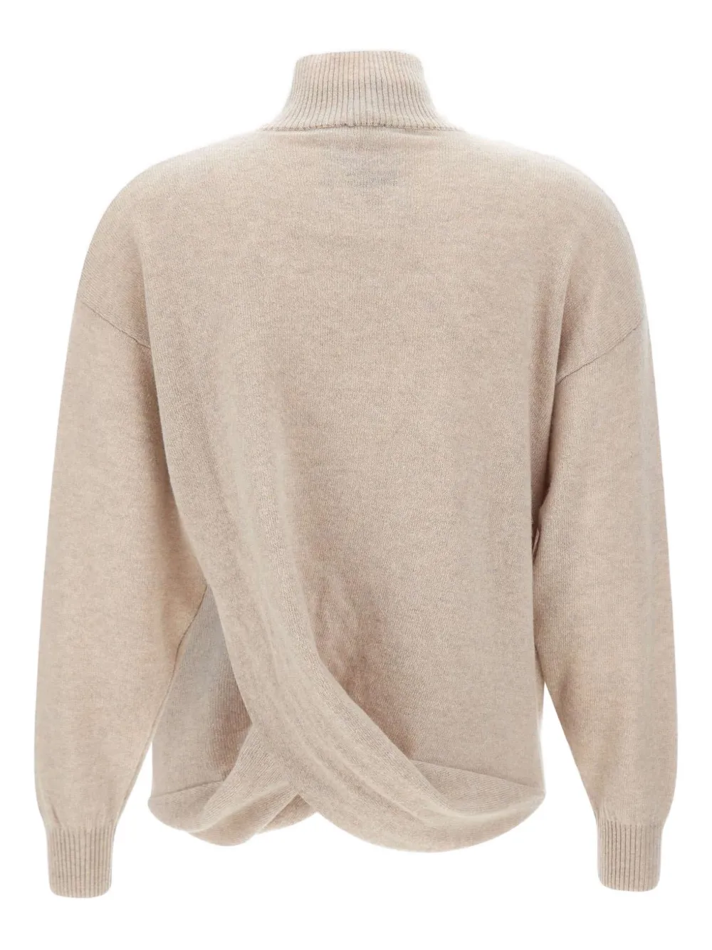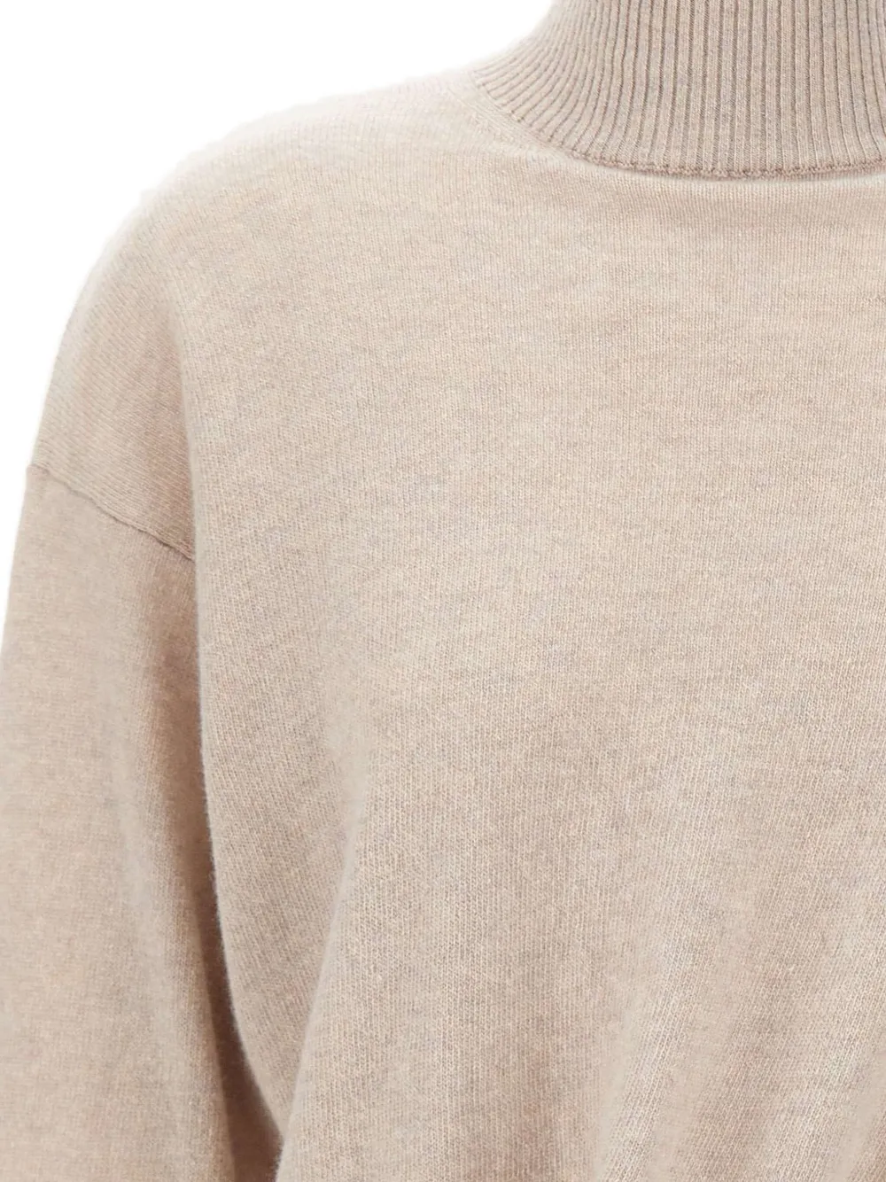 Бежевый с высоким воротом и длинными рукавами из смеси шерсти и кашемира