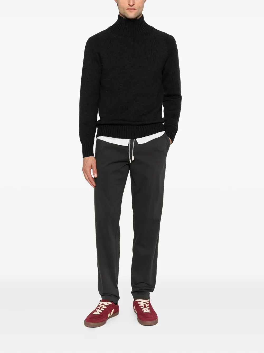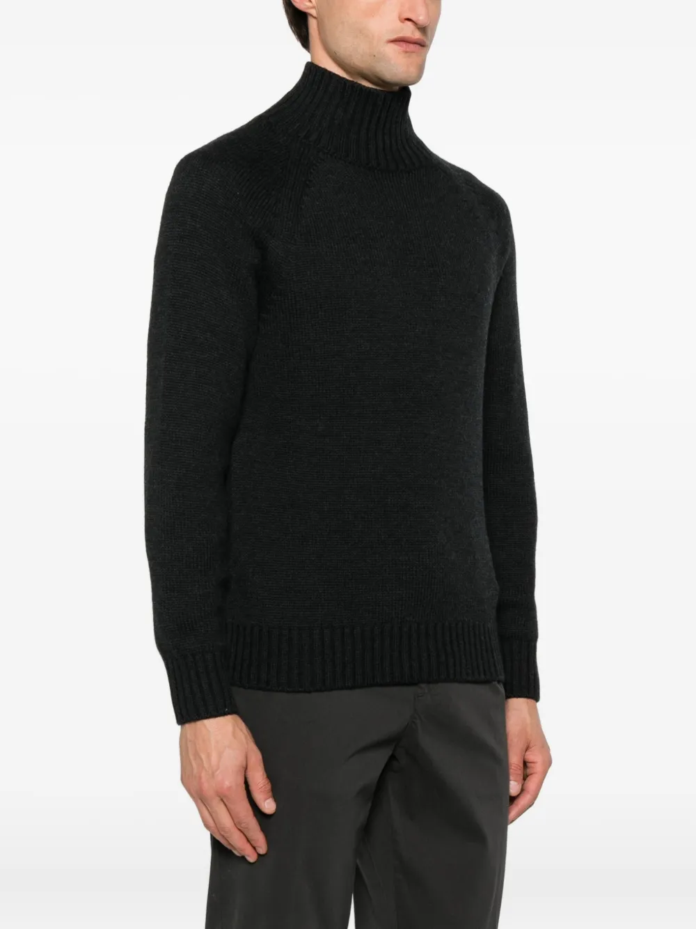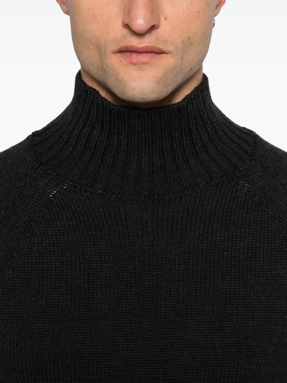 Черная шерстяная кофта с высоким воротом и длинными рукавами, ребристая отделка
