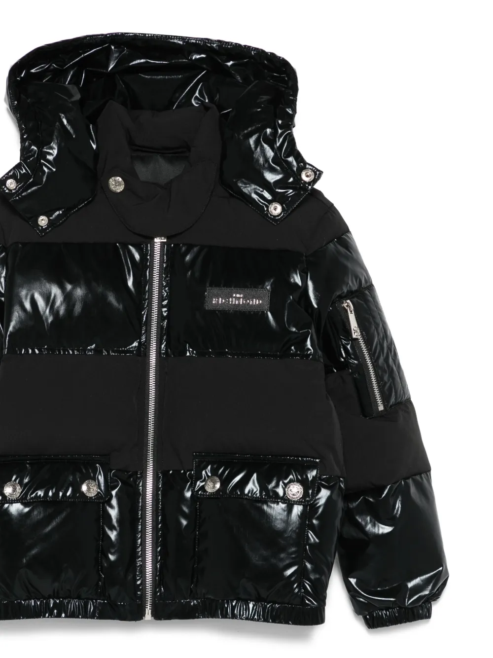 Блестящая утепленная куртка с капюшоном John Richmond Junior, черный