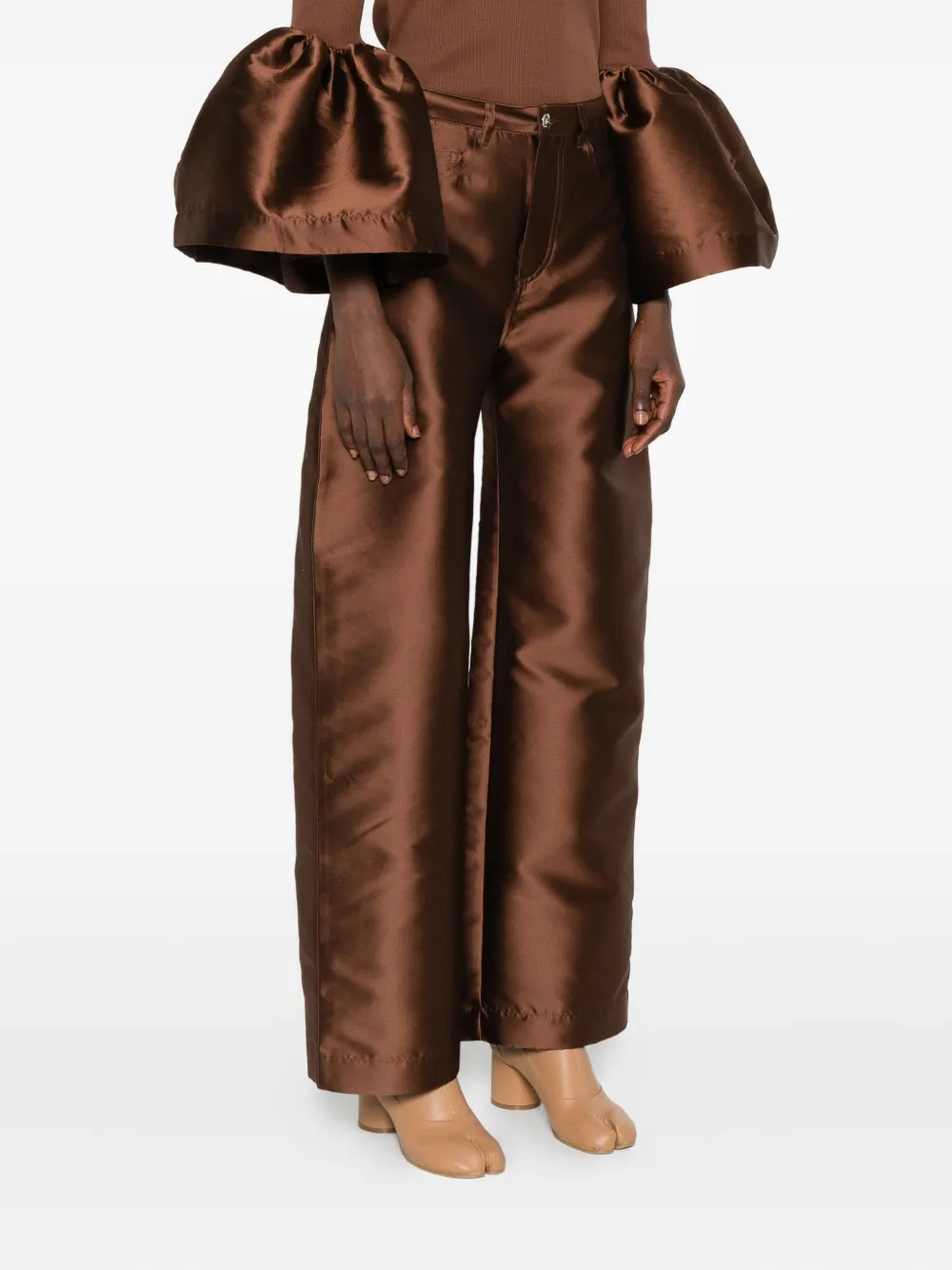 Коричневые обручи для ремня с высокой талией и прямыми штанинами