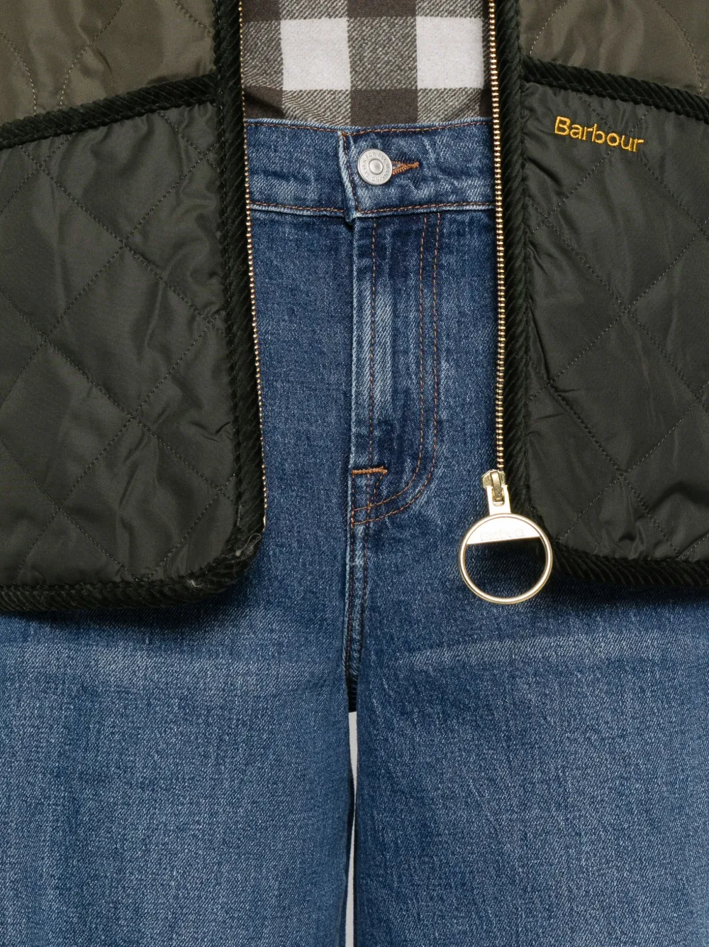 Синяя модель с пятью карманами и застежкой на пуговицы